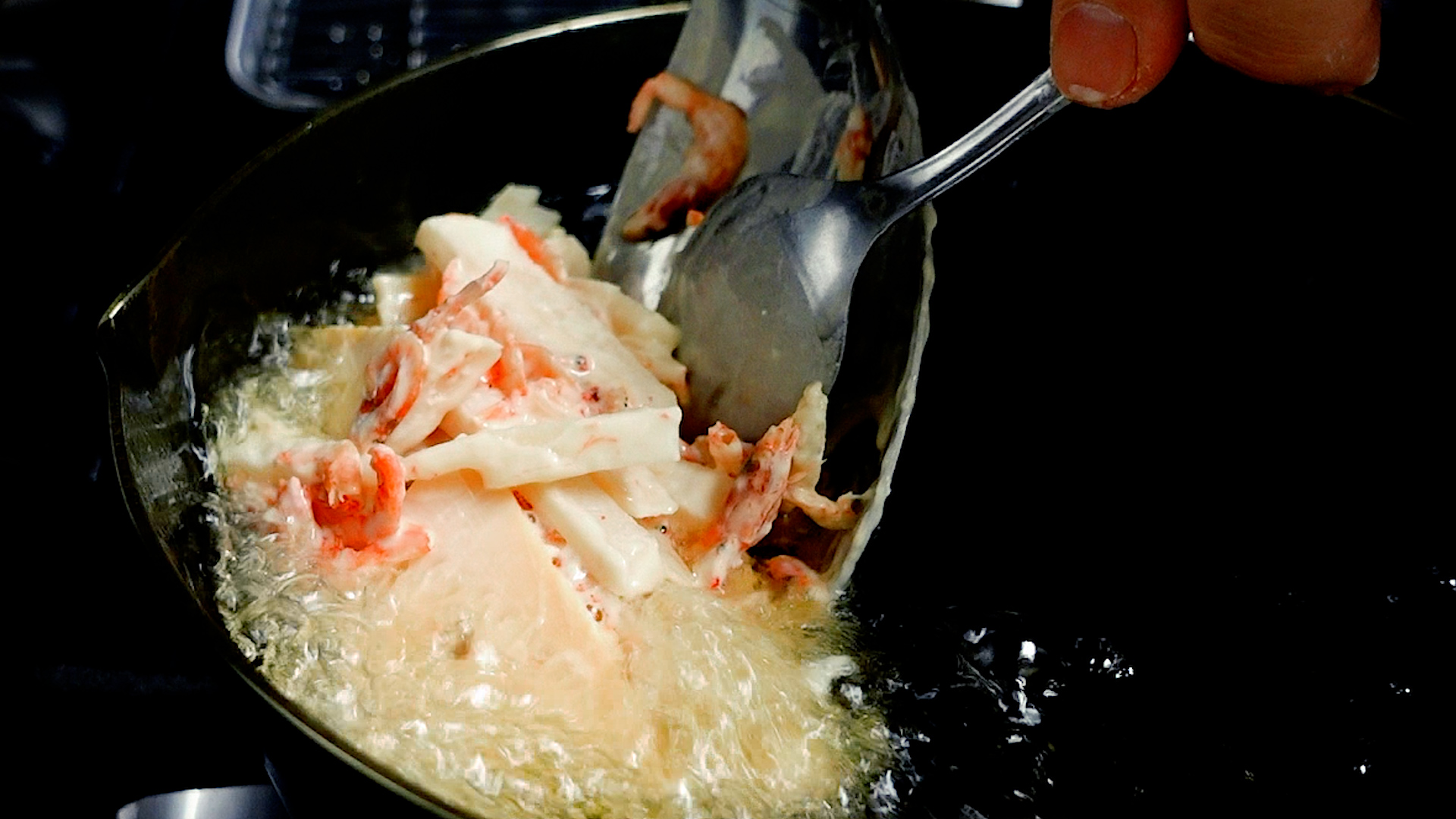 💡揚げているときに衣が少なかったら途中で衣をかけてもOKです。