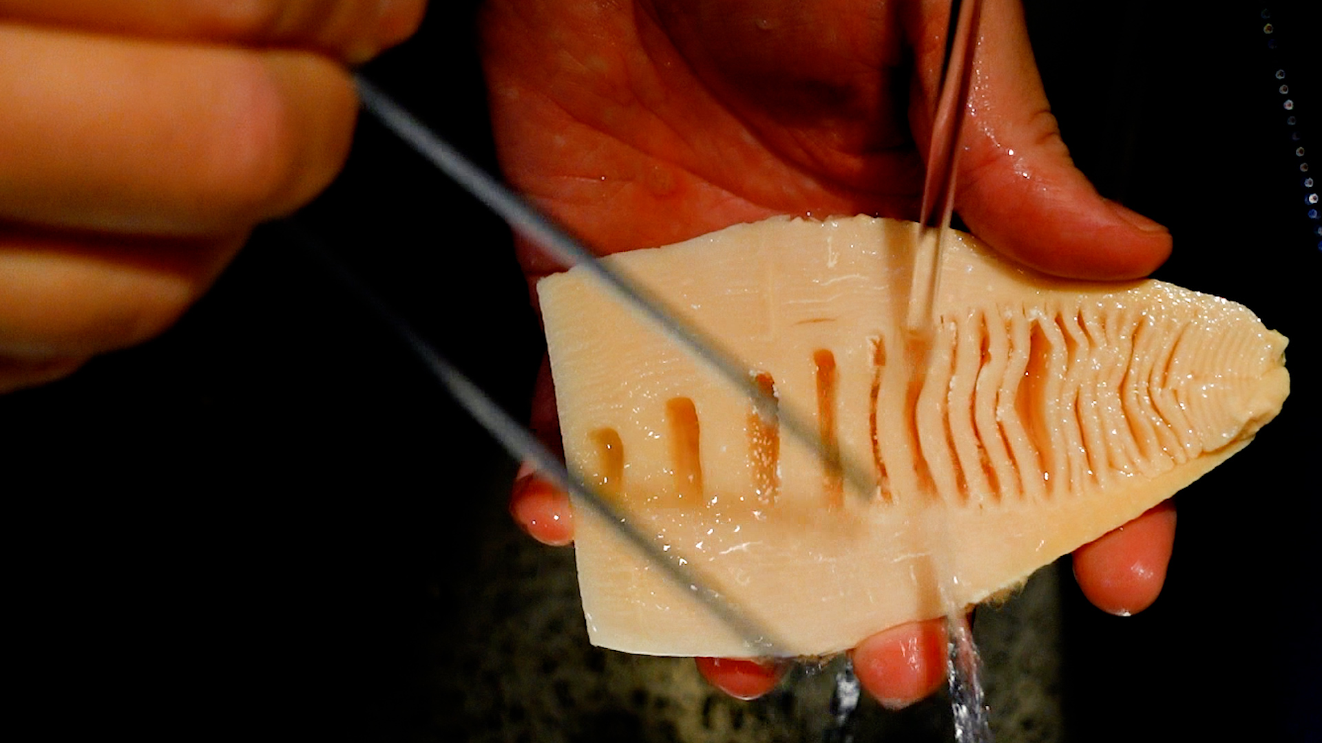 💡たけのこの中の白い粉は、アミノ酸の一種であるチロシンが結晶化したもの。うまみであり食べても問題ありませんが、気になる場合は取り除いてください。