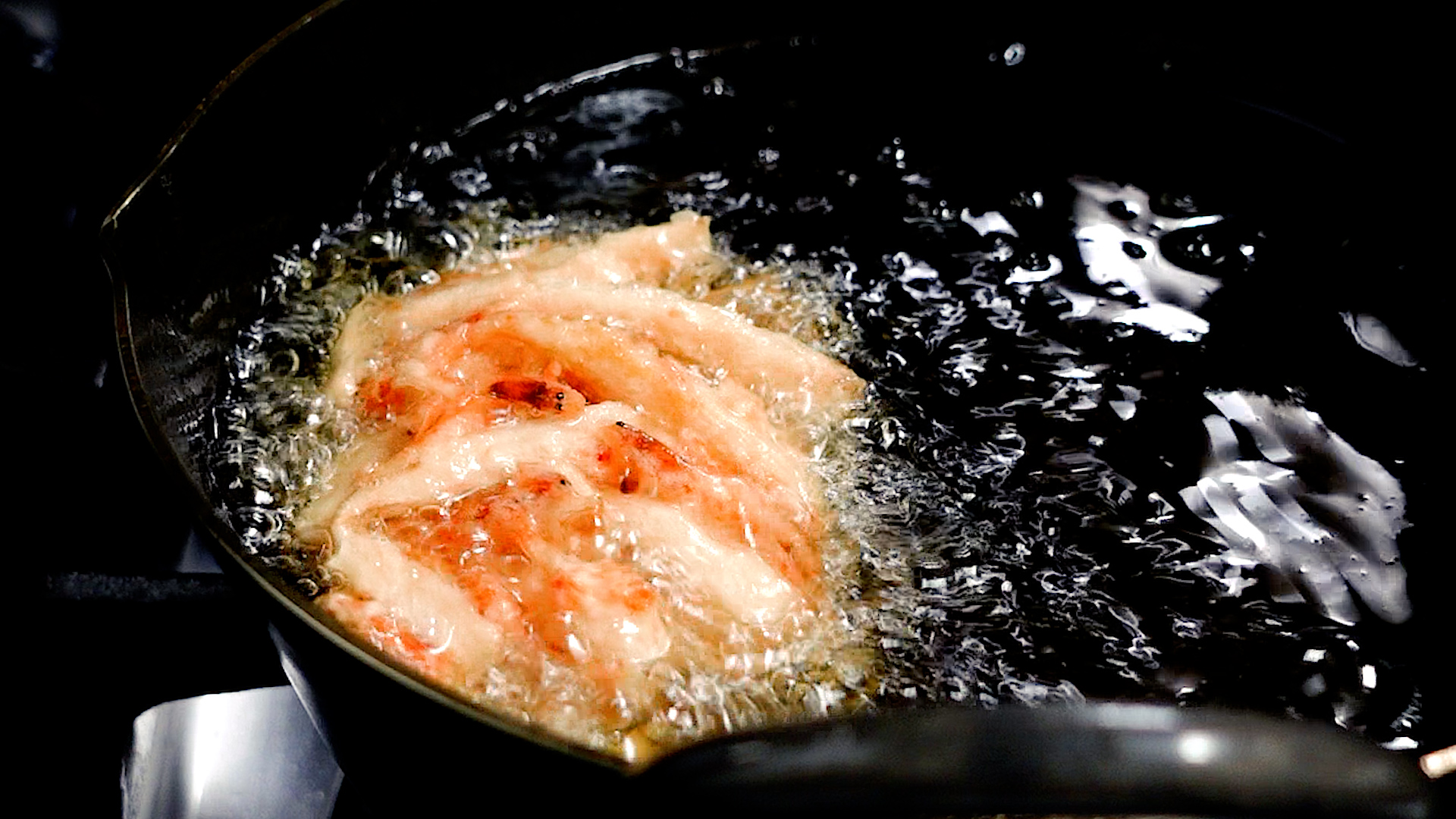 途中ひっくり返し、上下を入れ替える。揚げ時間の目安は3分~4分。カラッと揚がったら取り出し油をきる。もう一つも同様につくる。