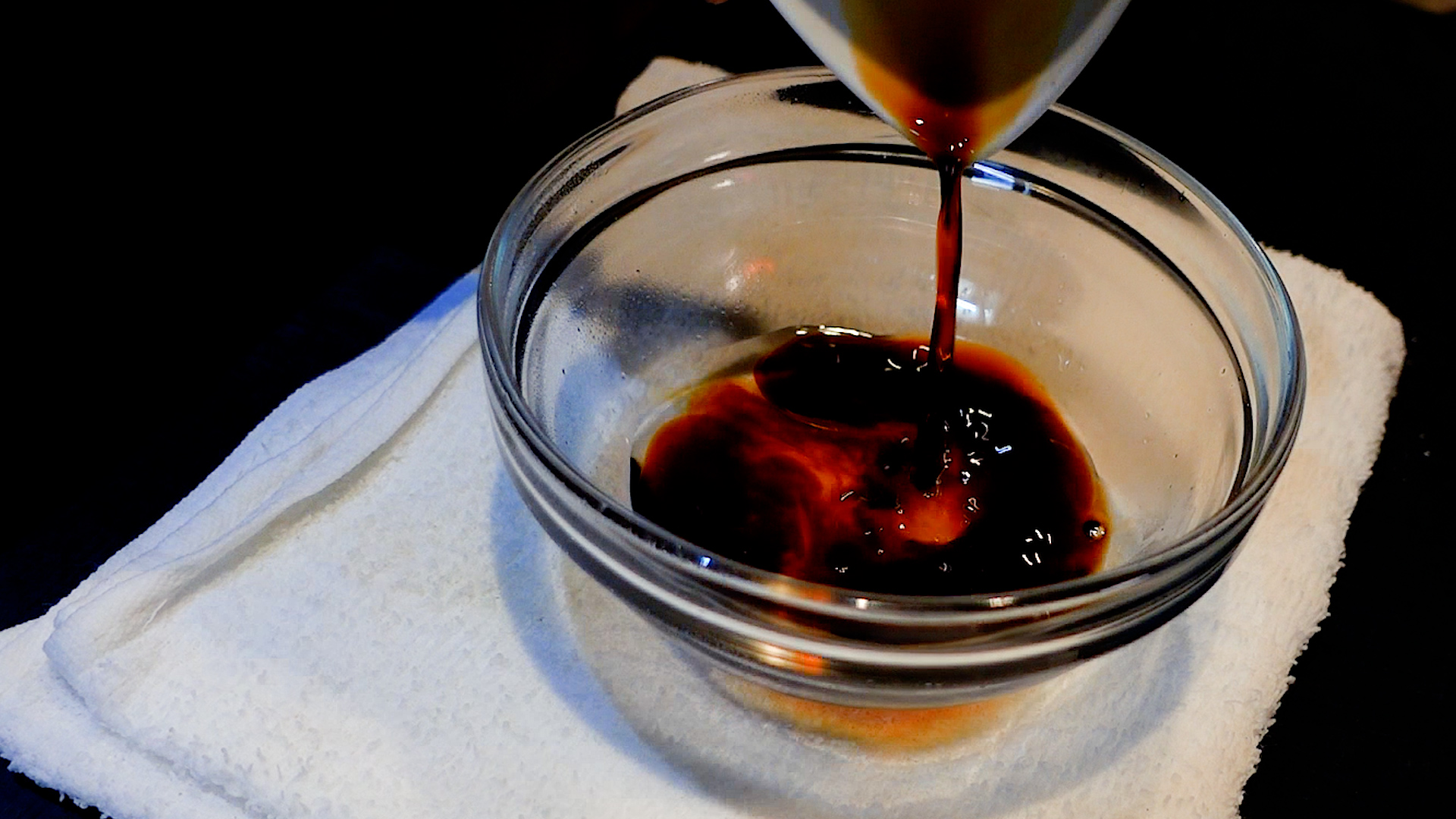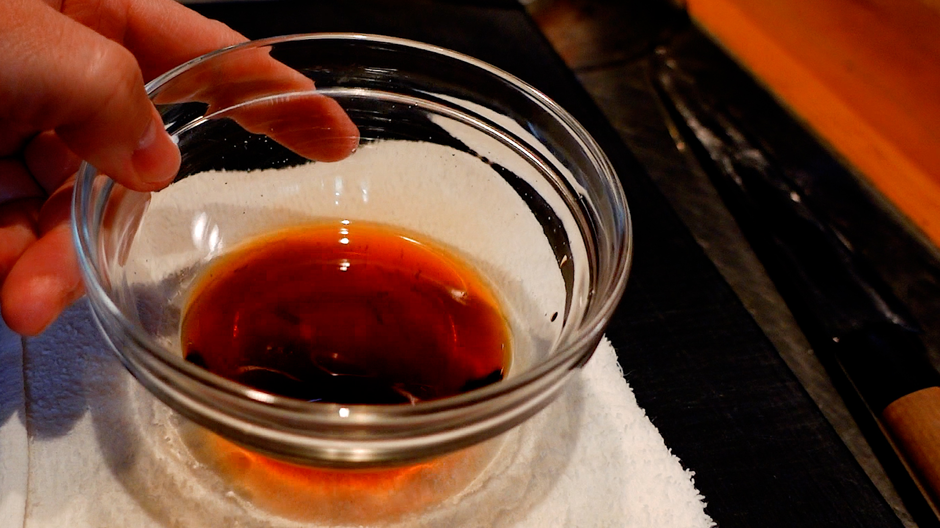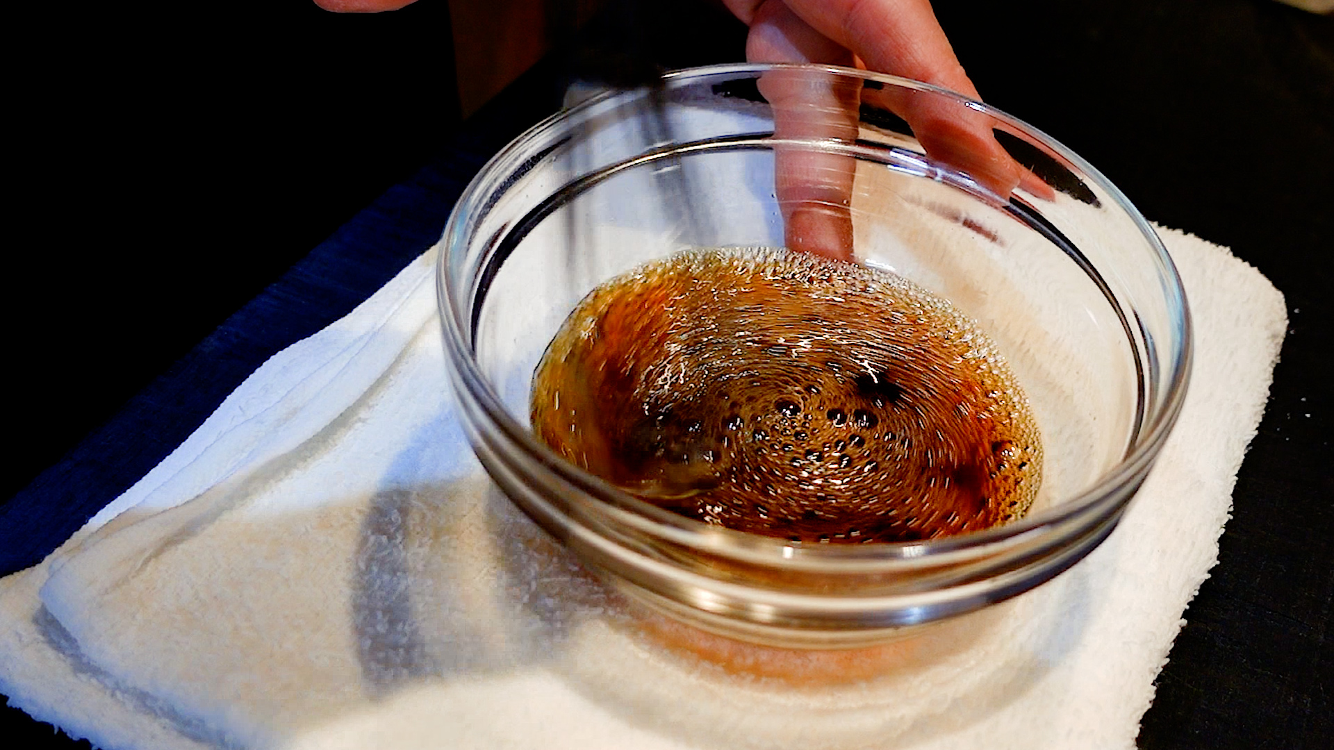 ◆醤油 大さじ2、砂糖 小さじ1、水 大さじ1を加え混ぜ合わせる。かつお節を加えなじませ1分おき、こす。