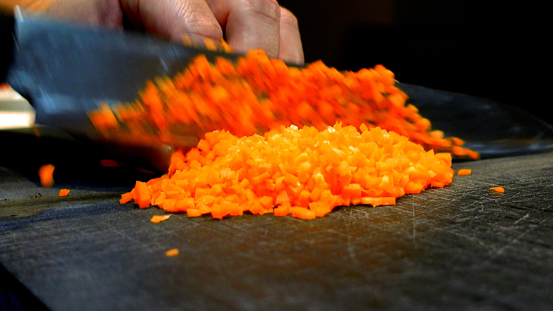 玉ねぎ、にんじん、にんにくは細かくみじん切りにする。