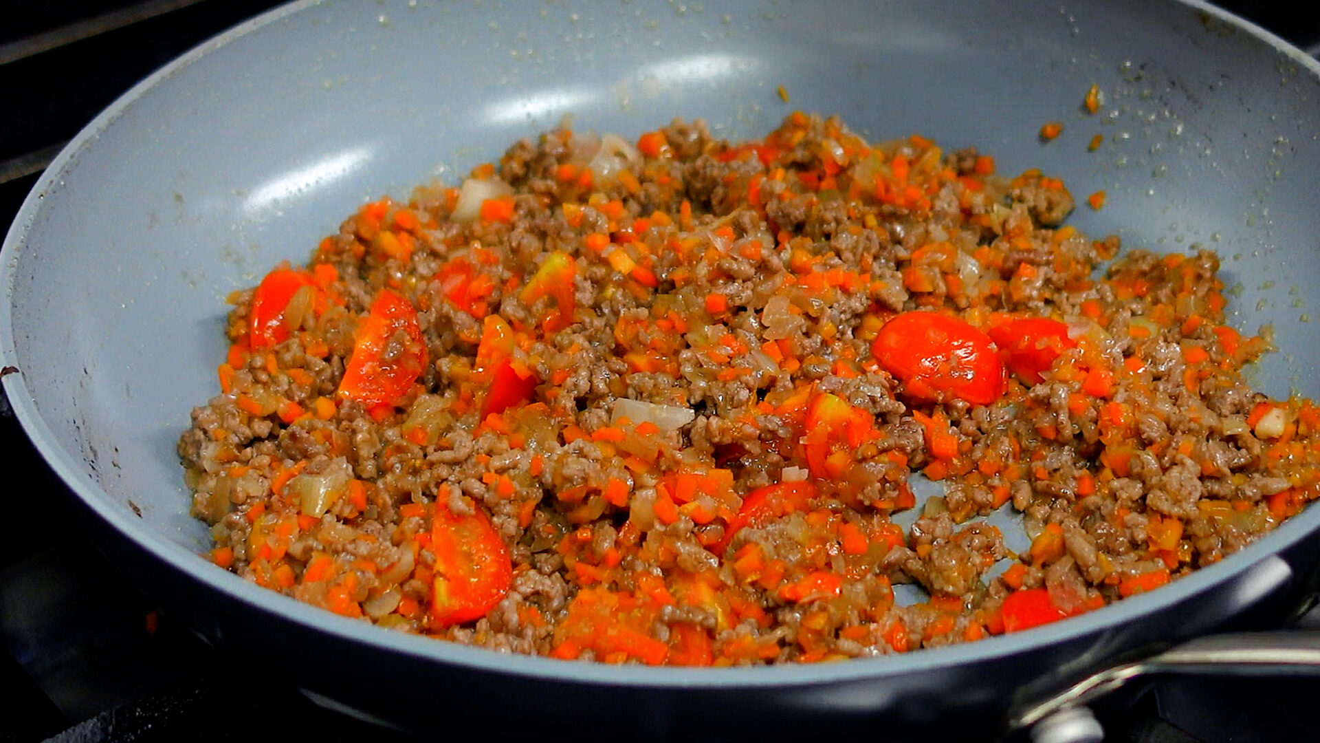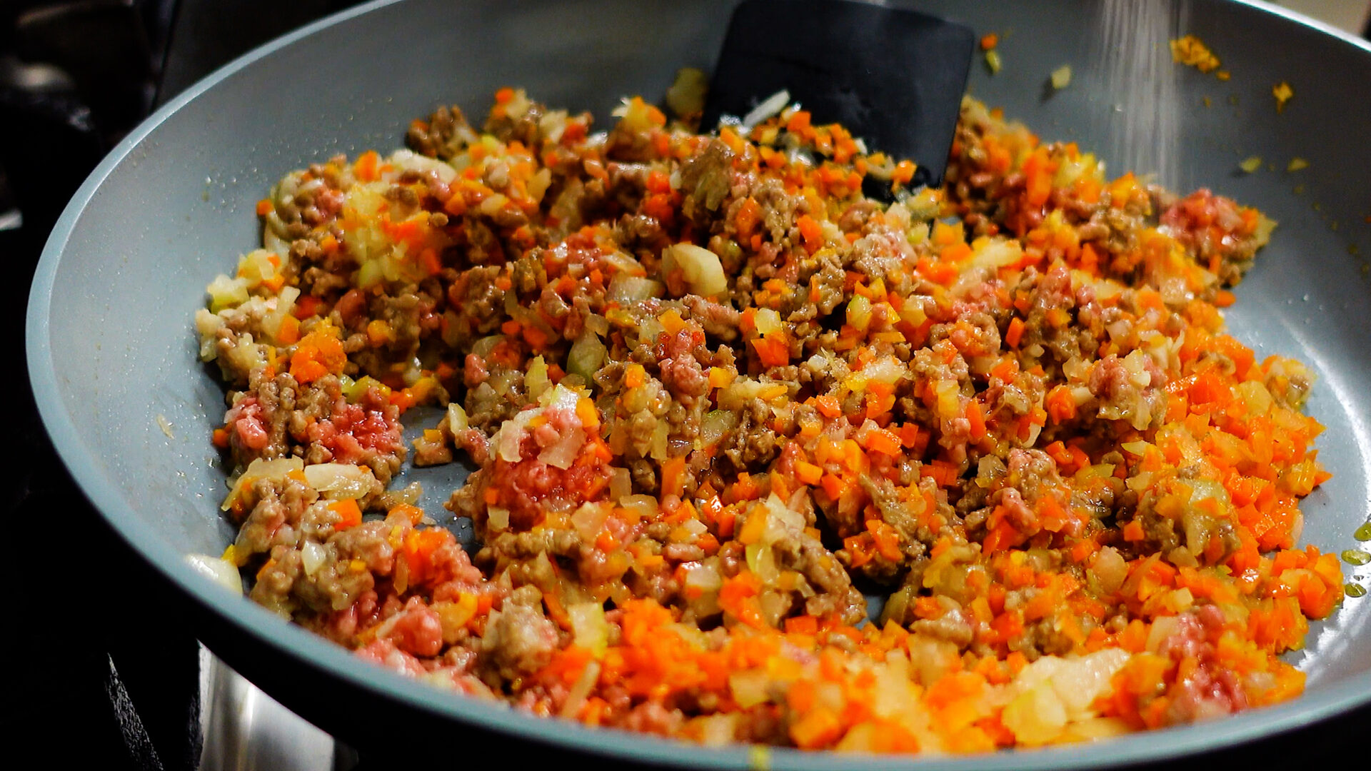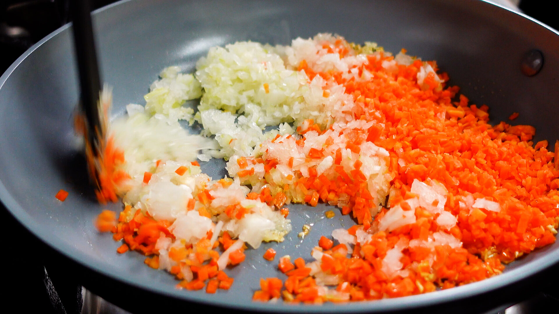 ポイントは玉ねぎ・にんじん・にんにくを丁寧にみじん切りにすることと、最後に加えるソースをフライパンでかるく煮詰めること。