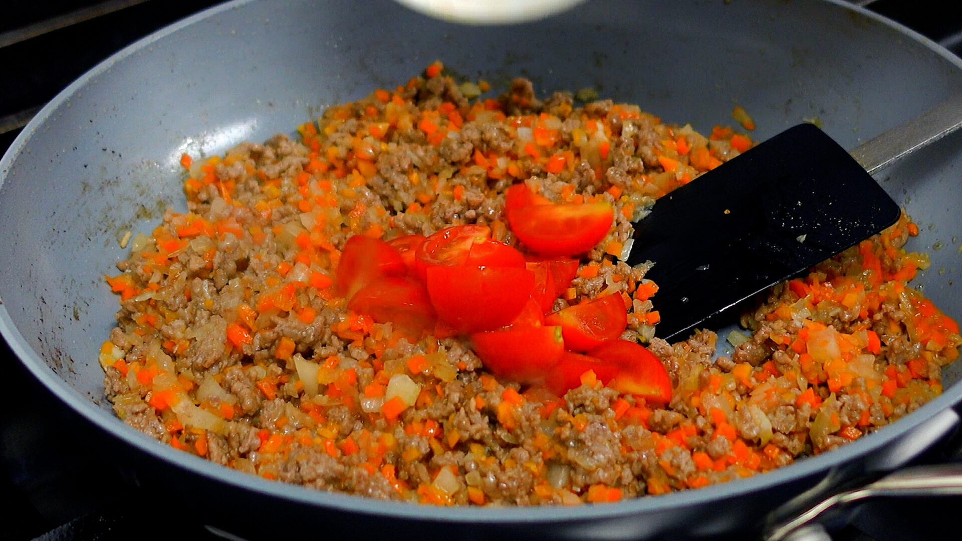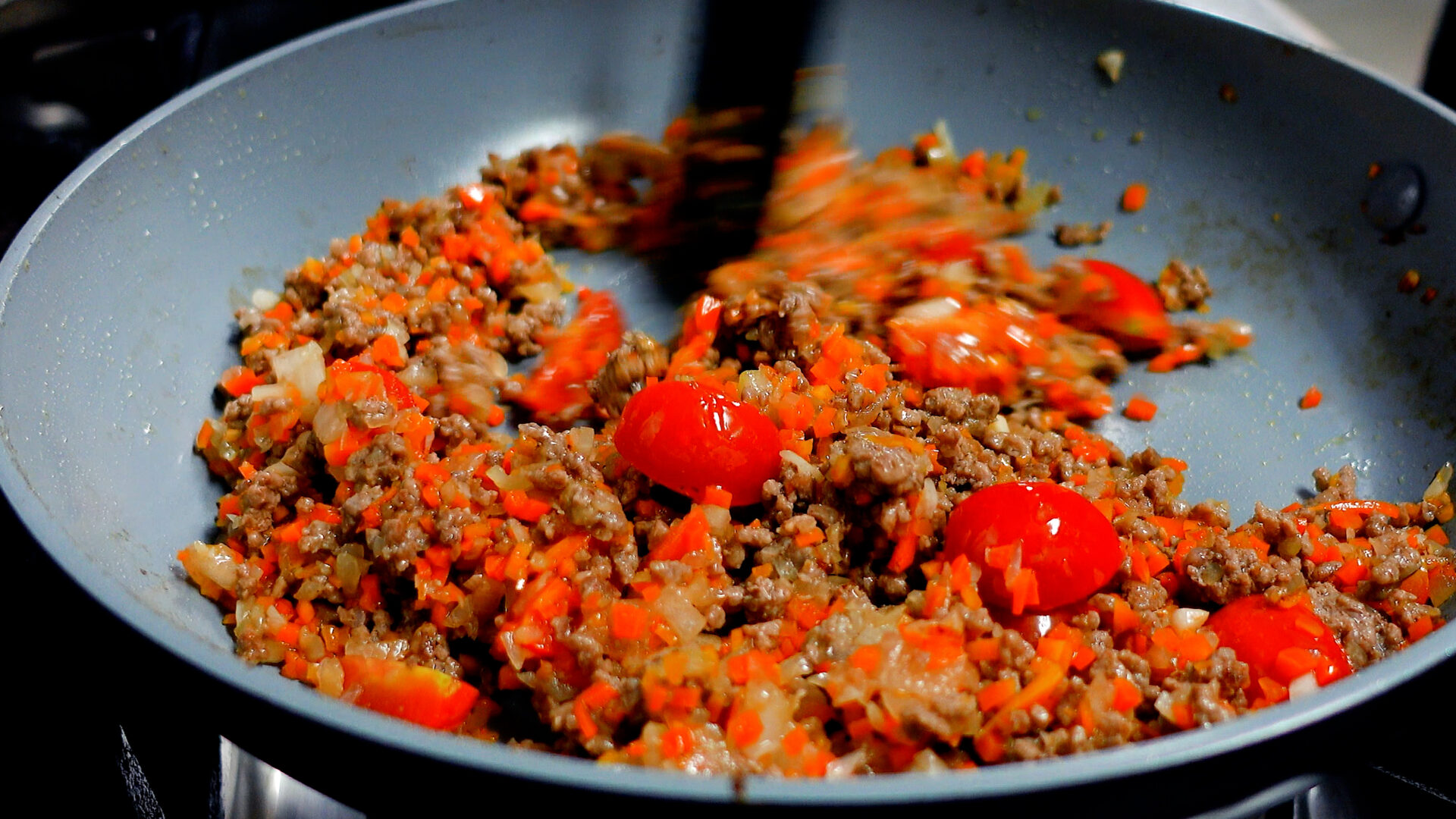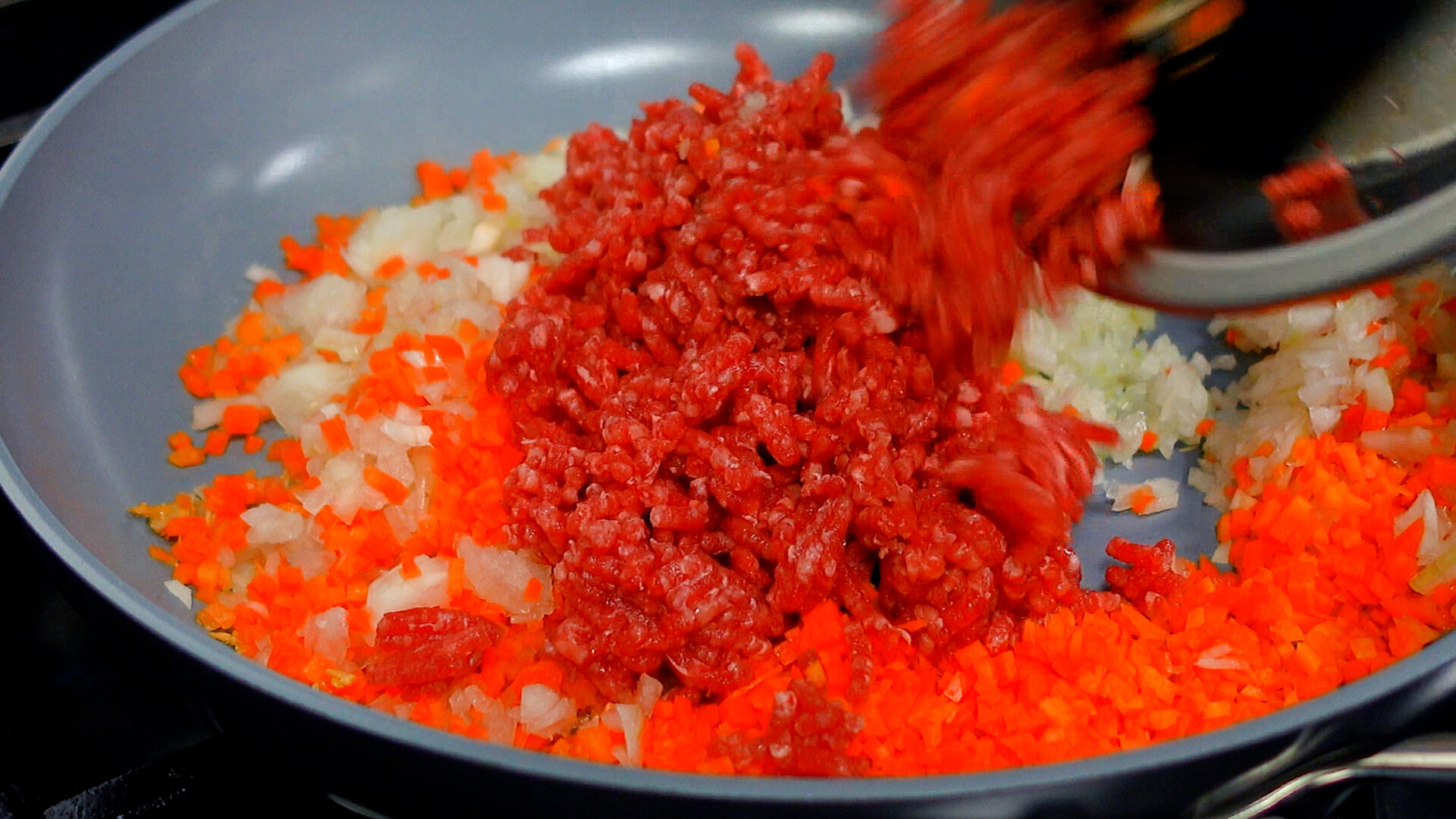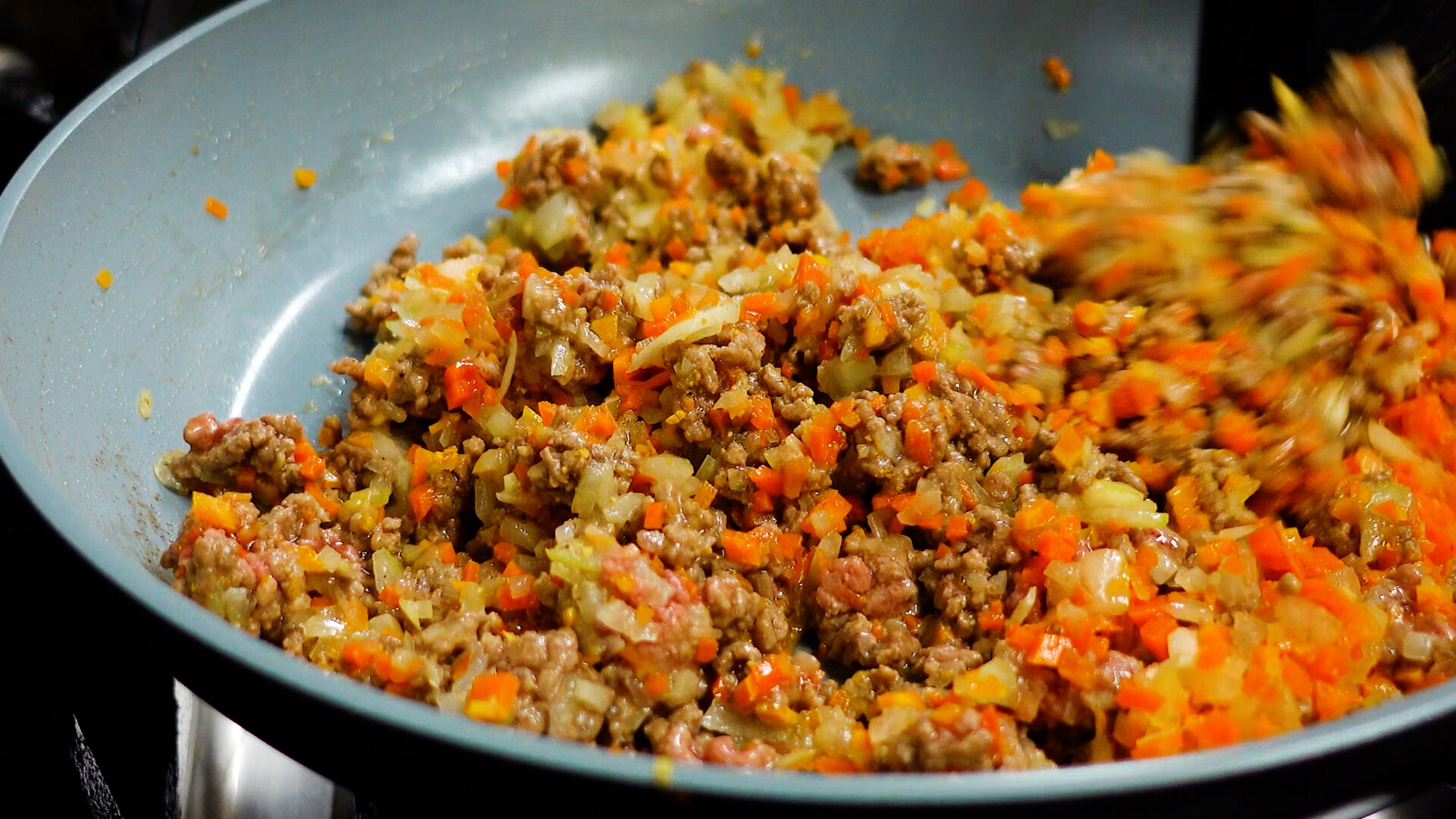 ポイントは玉ねぎ・にんじん・にんにくを丁寧にみじん切りにすることと、最後に加えるソースをフライパンでかるく煮詰めること。