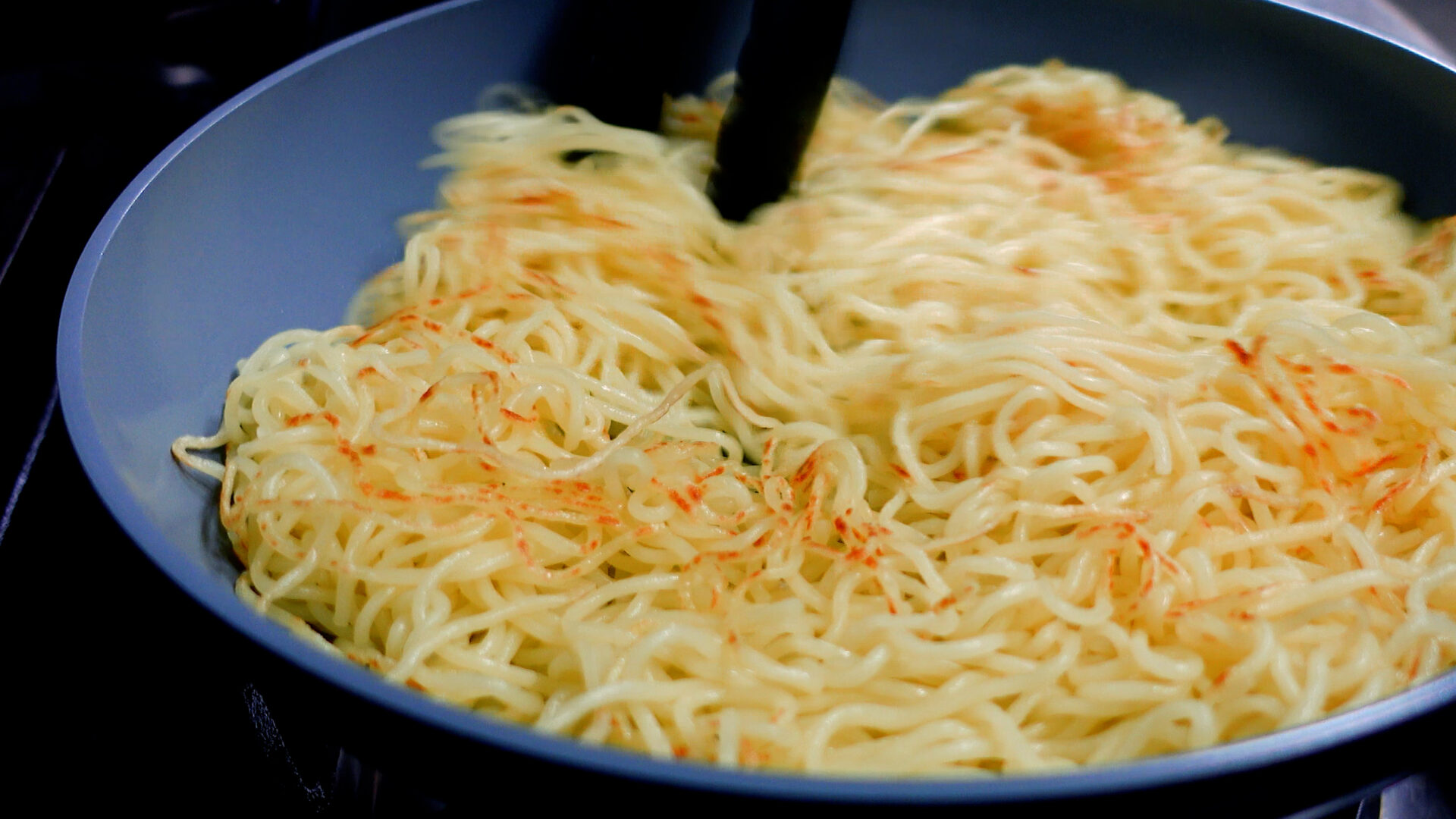💡麺の種類にもよりますが、先に炒めほぐしておくと具材と絡めやすくなります。麺がほぐれにくい場合は、油または水を加えて炒めます。