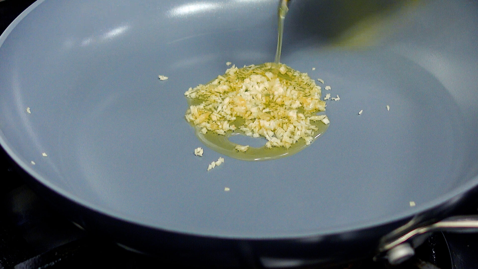 フライパンは洗わずに、にんにく、オリーブ油 大さじ1を入れ弱火にかけ、じっくり炒め香りを出す。香りが出たら玉ねぎ、にんじんを加えサッと炒め合わせる。