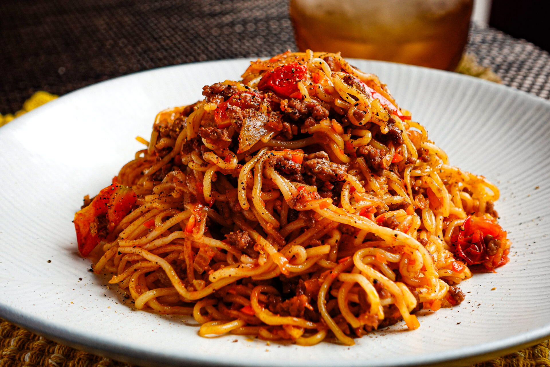 スパゲッティのボロネーゼを焼きそば麺でアレンジ!