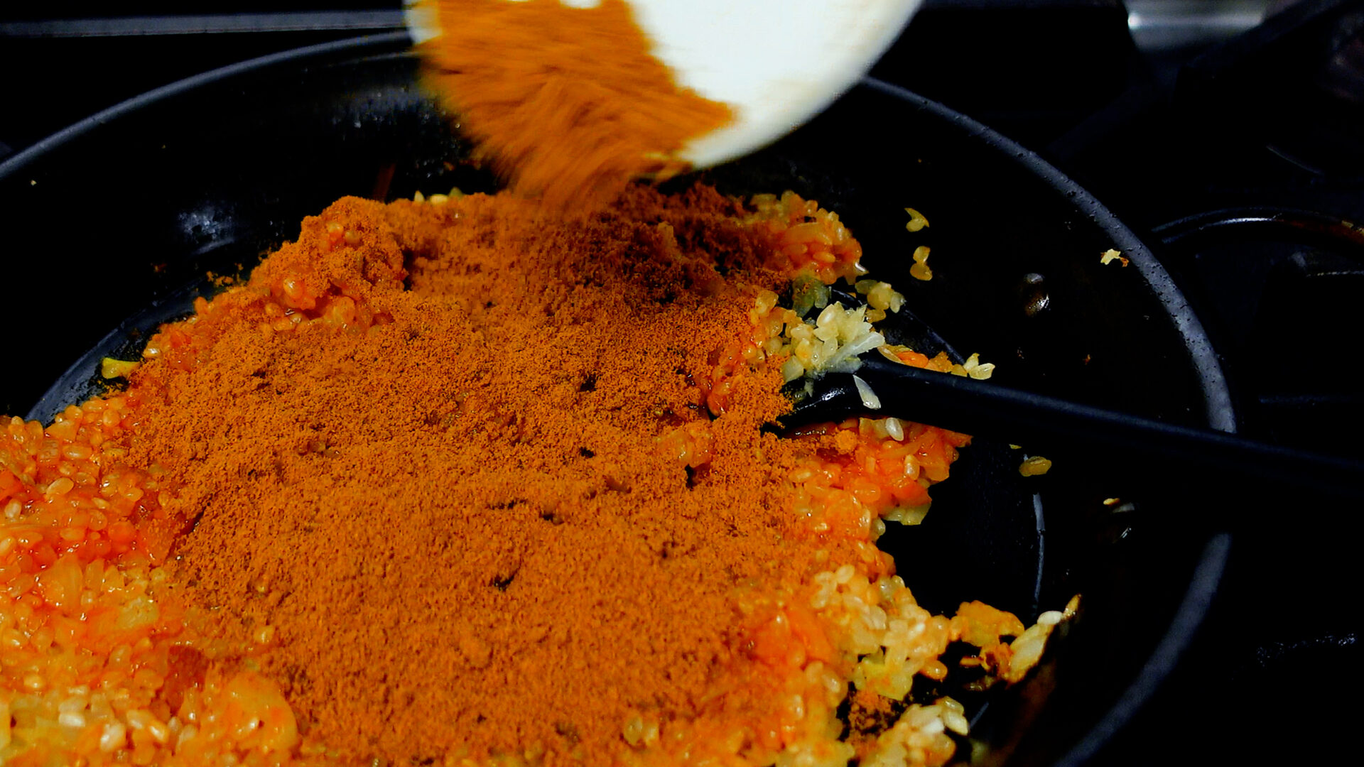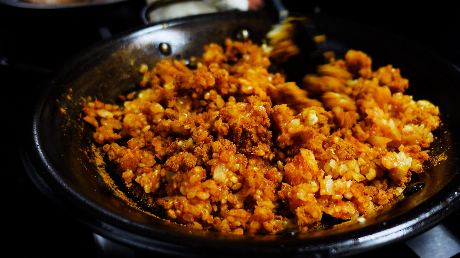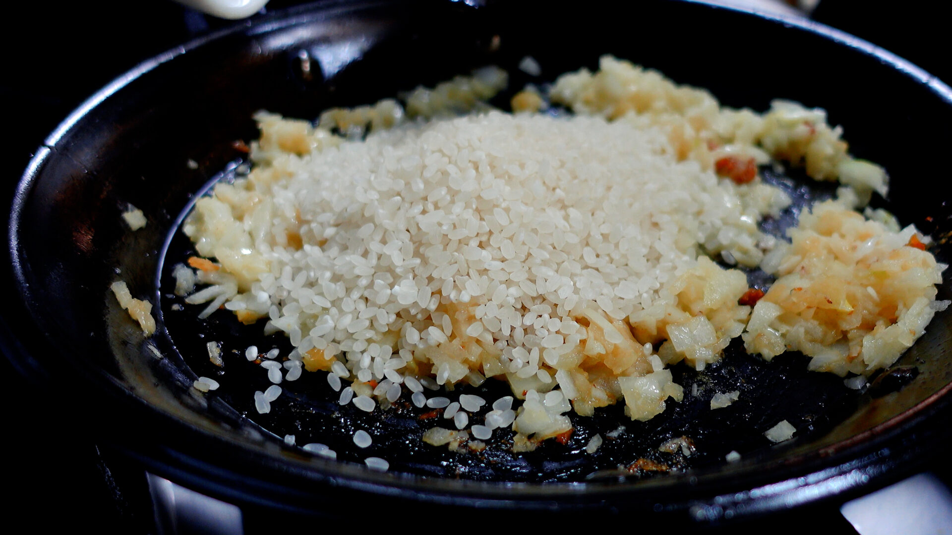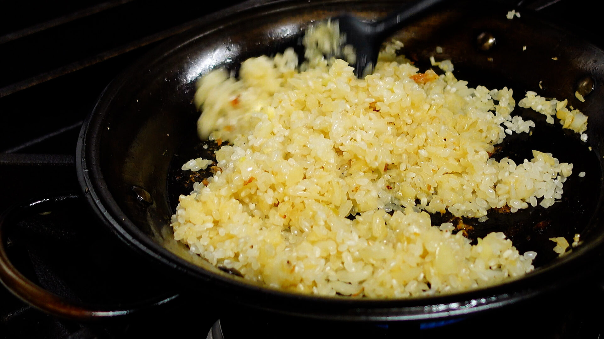 米を加えさらに炒める。
