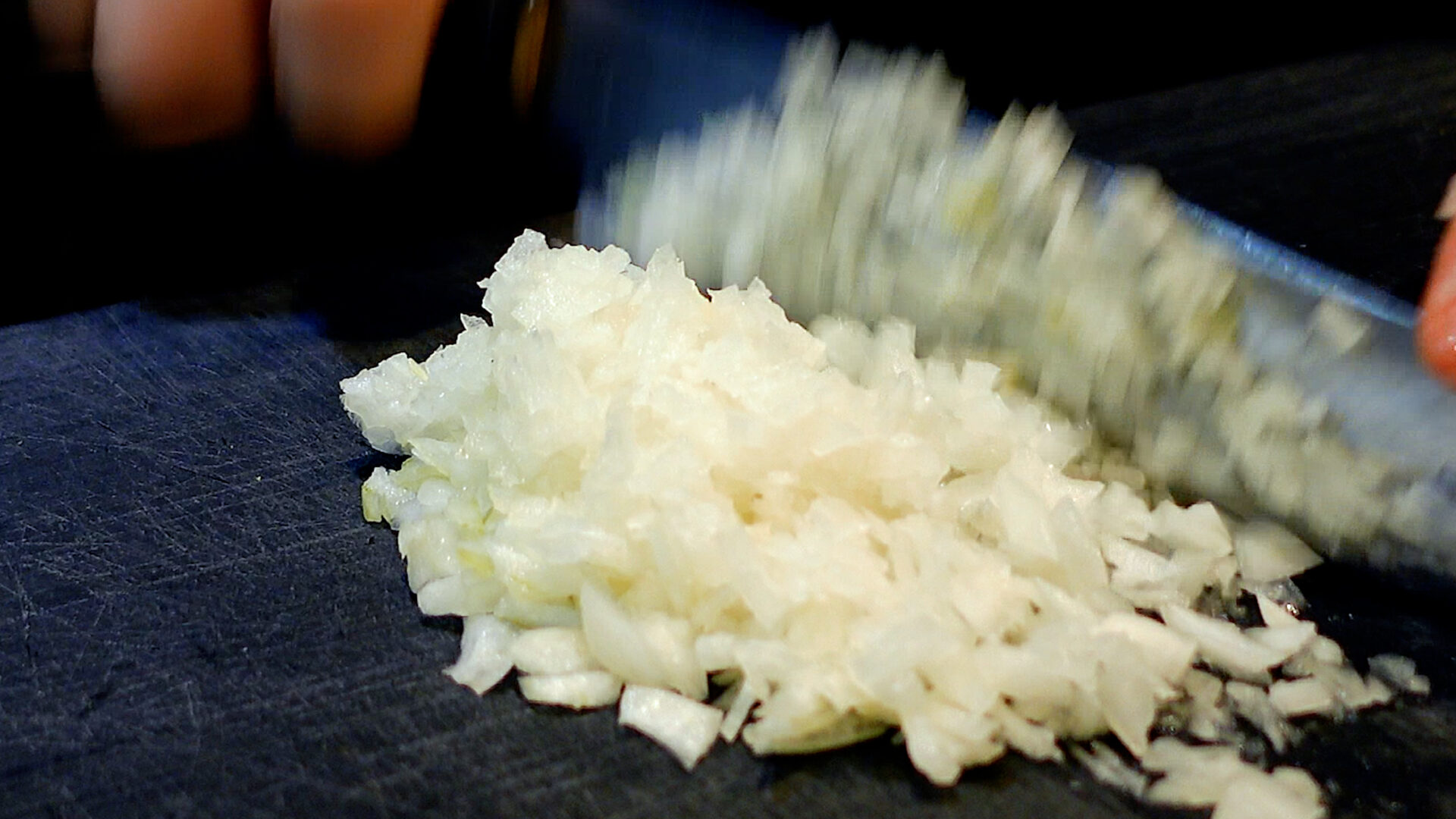 ブロッコリーは6~8個の一口大の房に切り分け、玉ねぎ、にんにくはみじん切りにする。