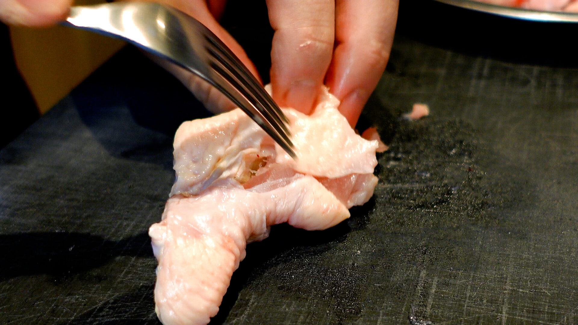 手羽元は数カ所切り込みを入れ、フォークで穴をあける。