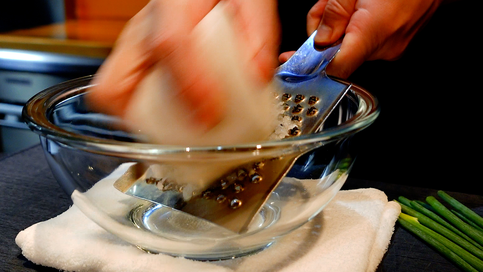 💡大根をおろすときはやさしくおろすのがポイント!力を込めておろすと辛味が強くなるといわれています。ある程度水分を残して水気をきります。