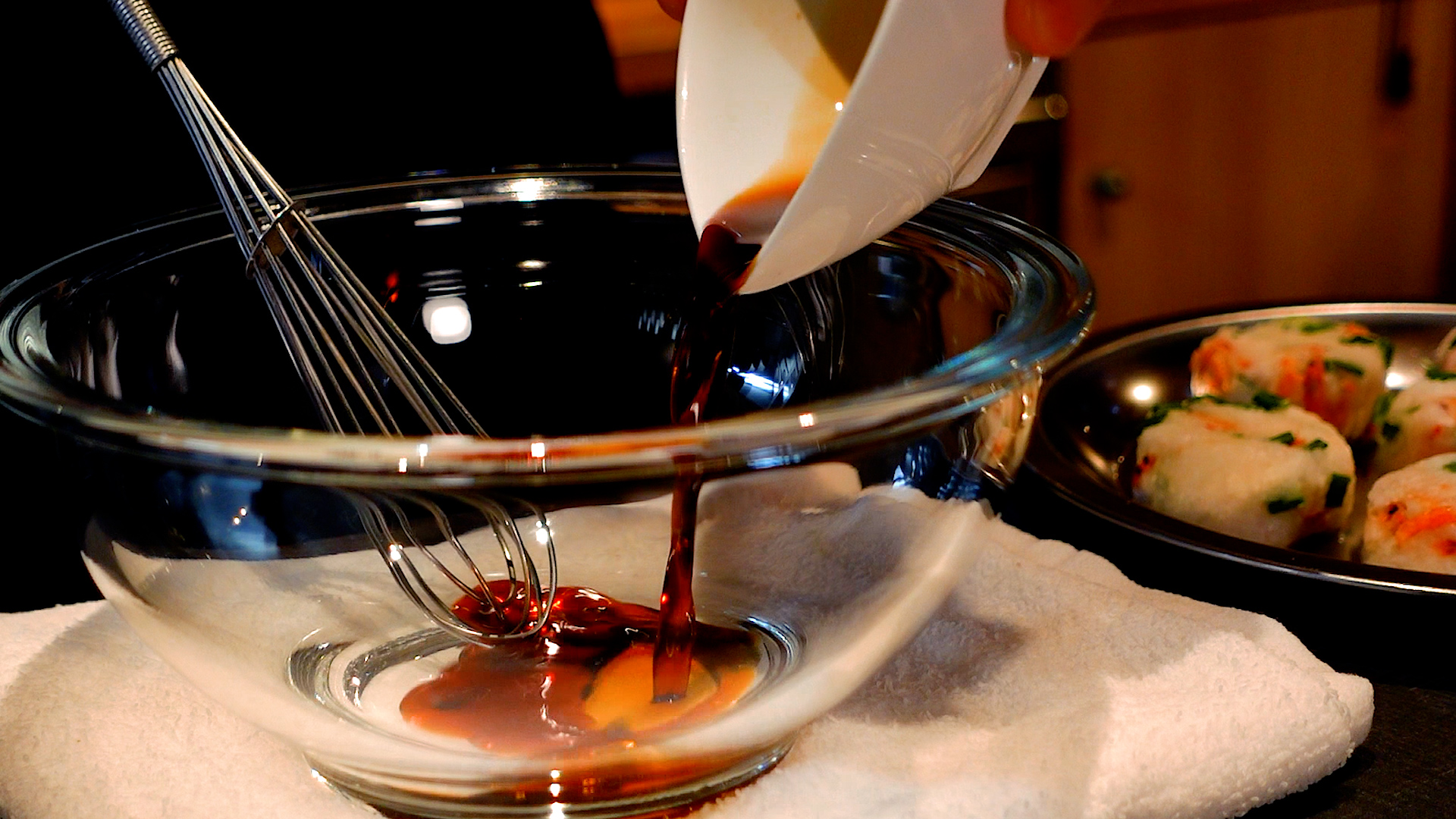タレを加えフライパンを揺すり、ひっくり返しながら絡める。