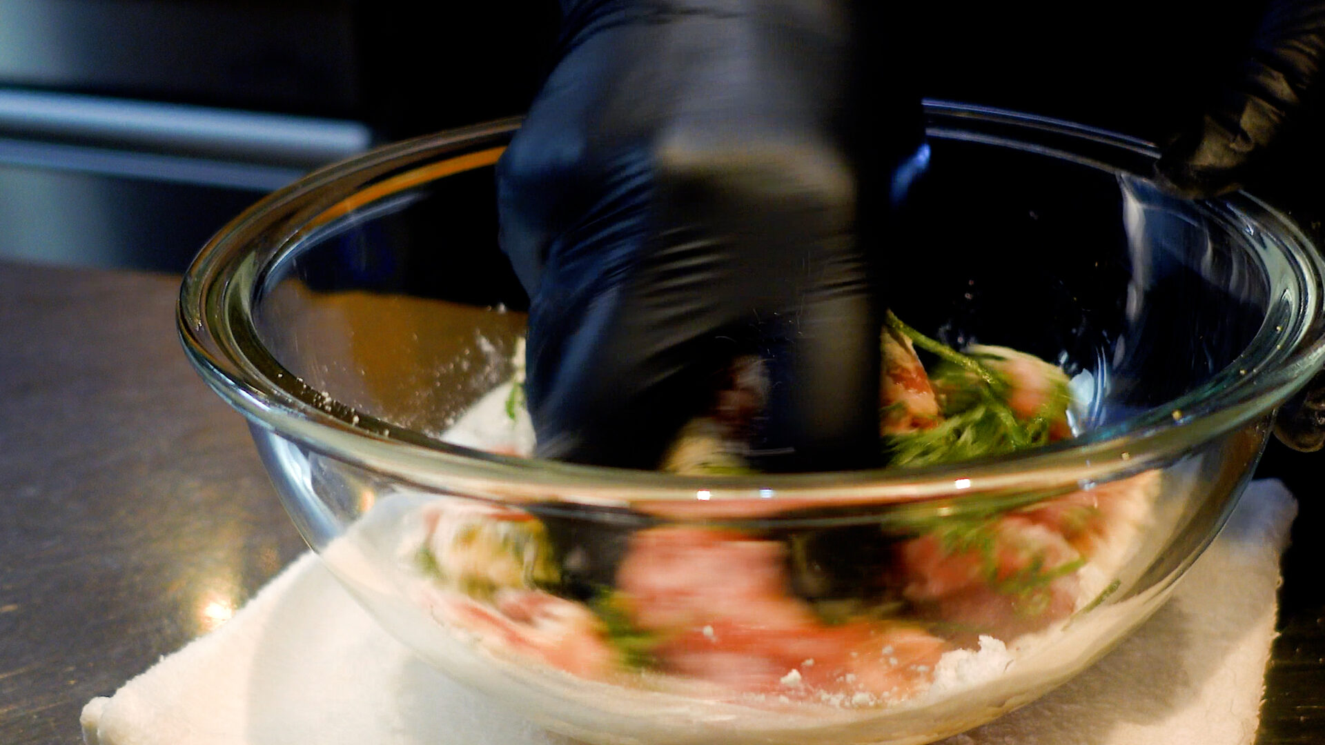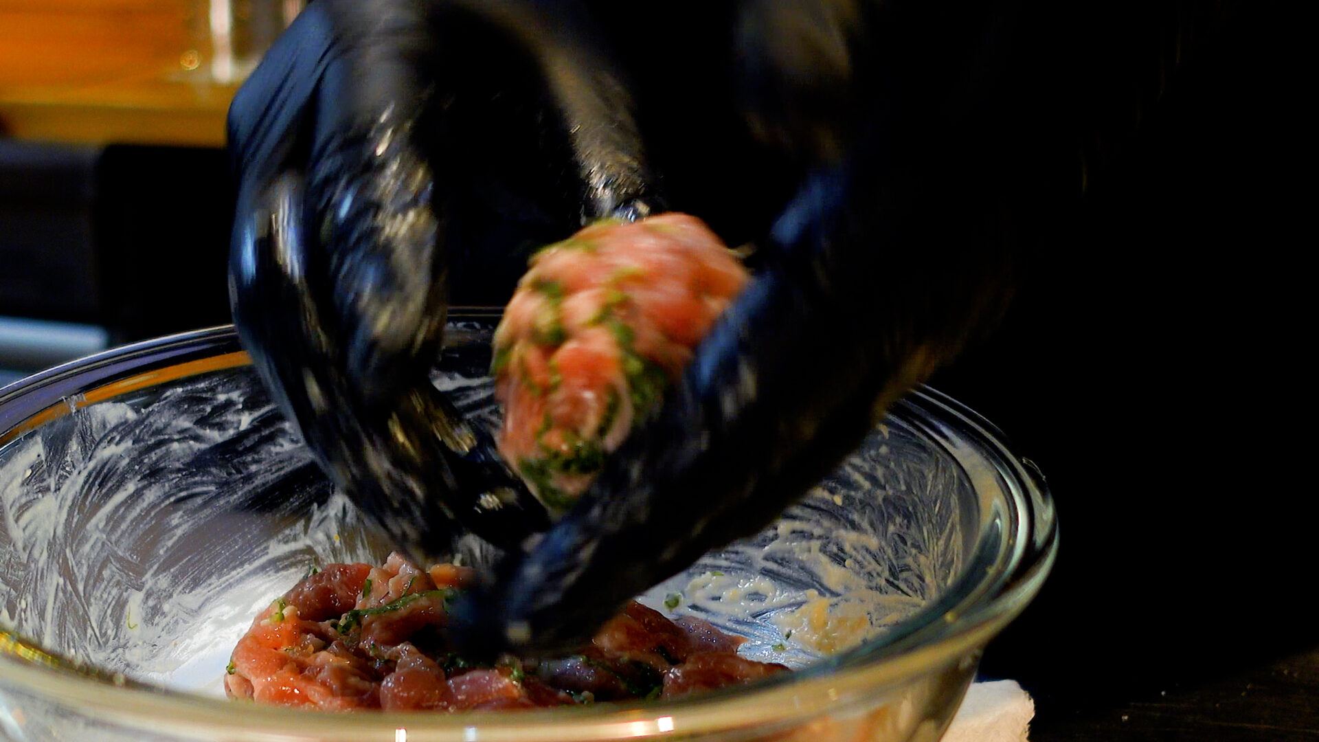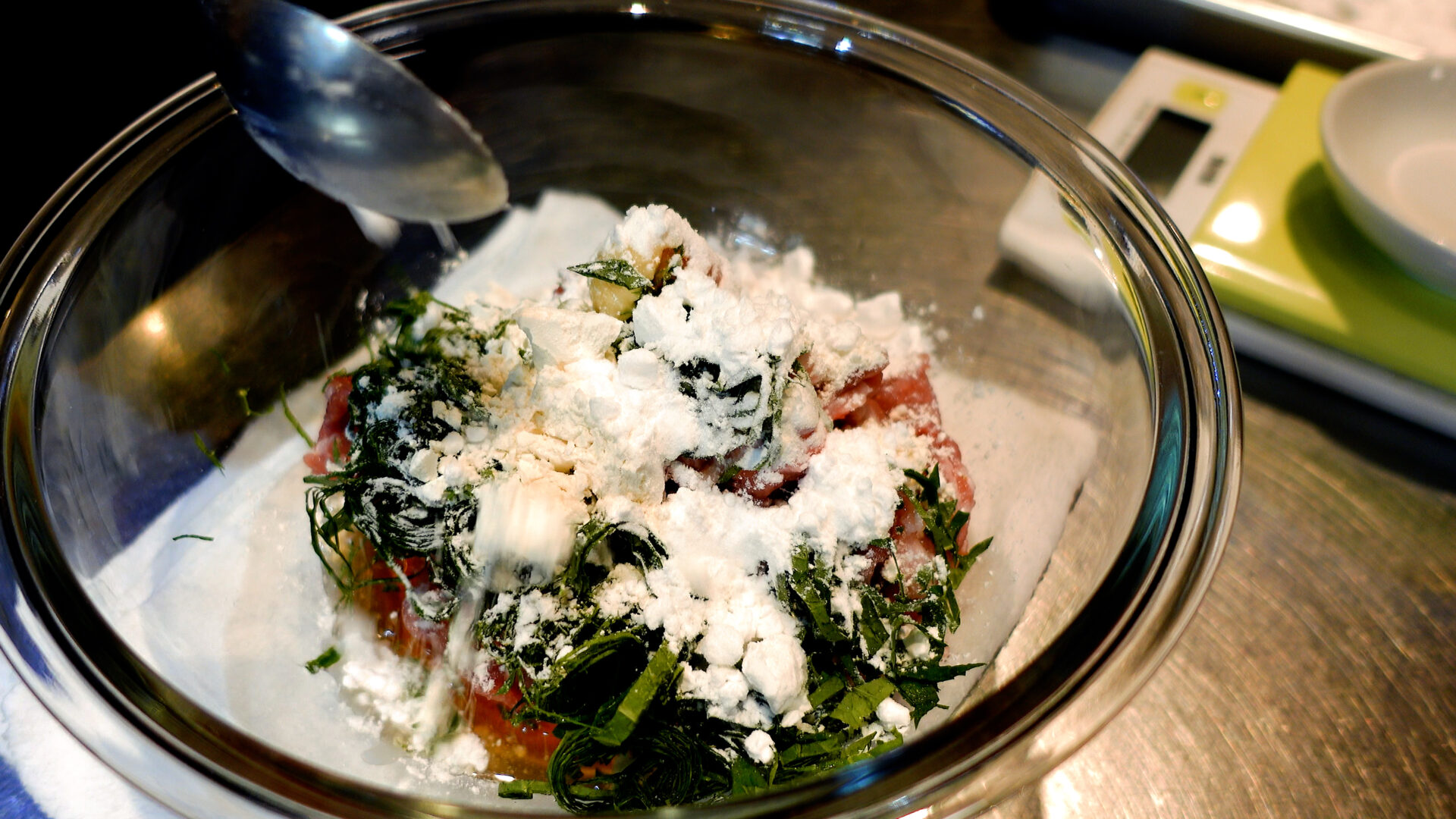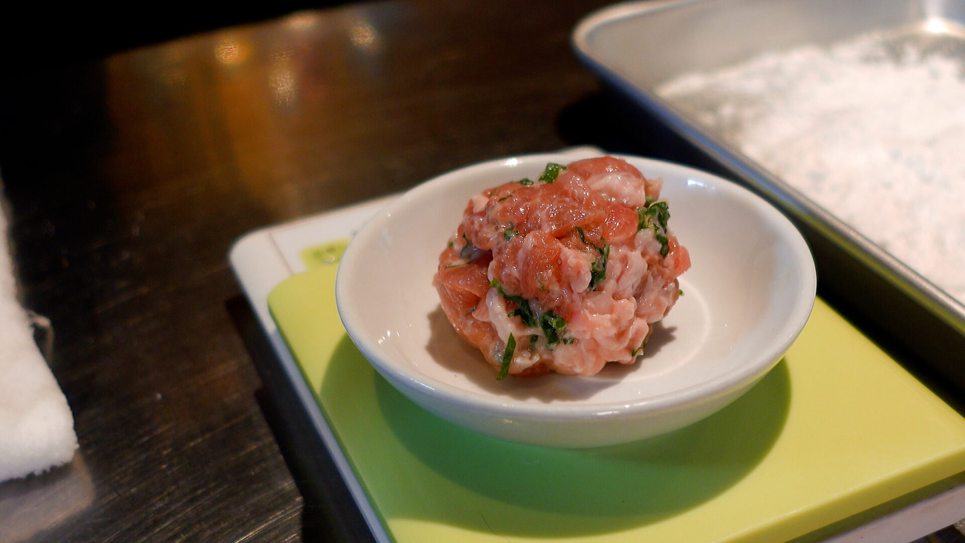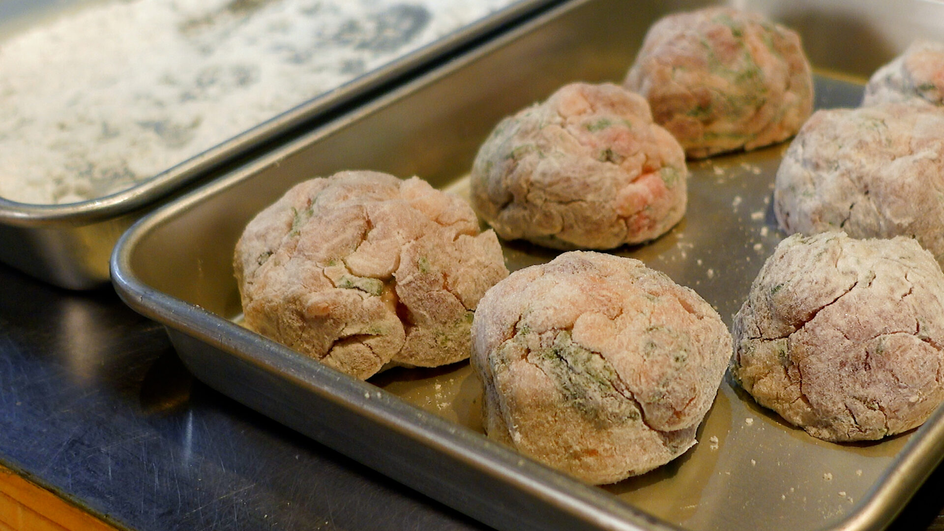 全体がまとまってきたら手に取り、丸く形を整える(1個約40g)。