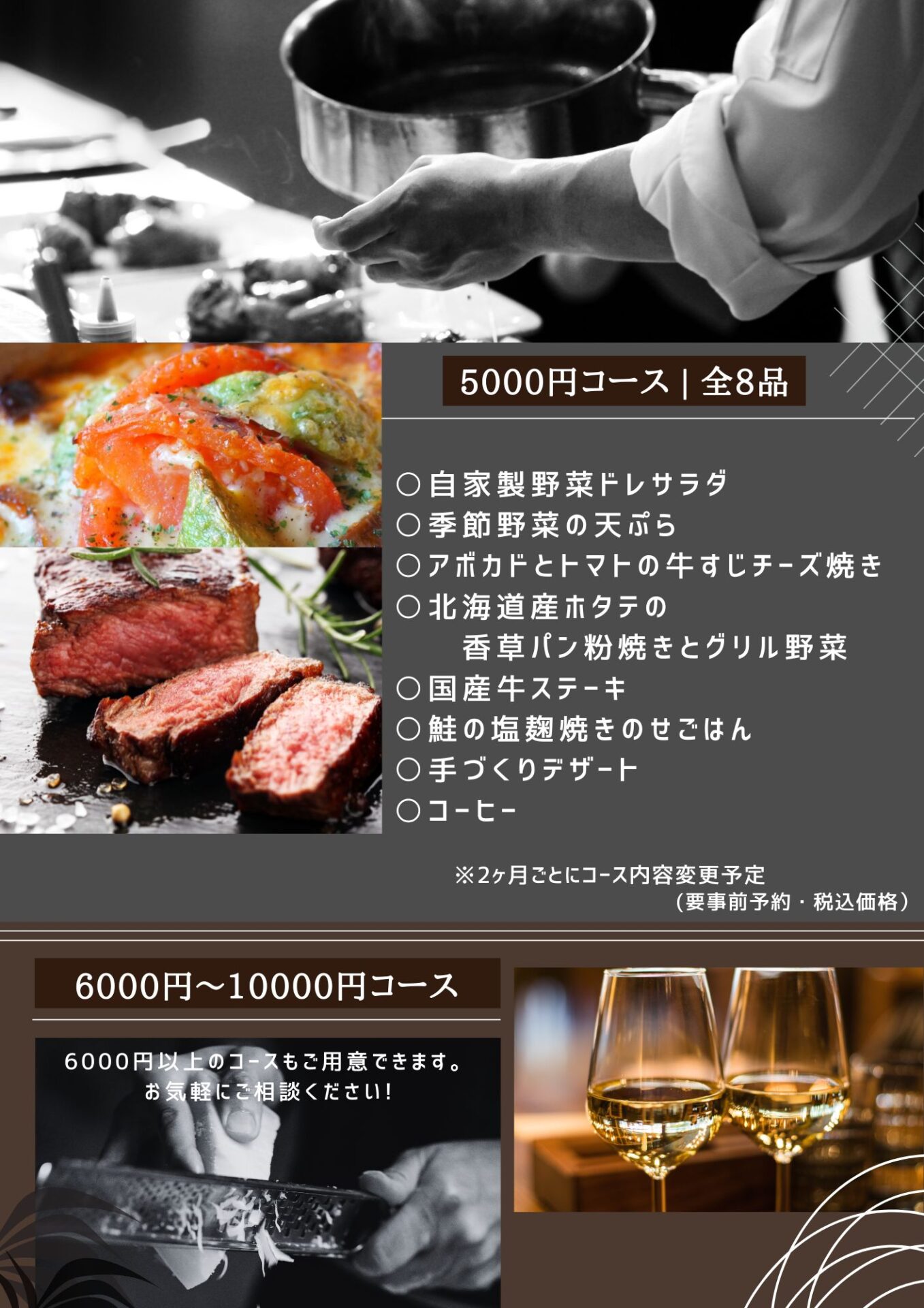 ご予算に合わせて6000円以上のコースもご用意可能です。お気軽にご相談くださいませ。