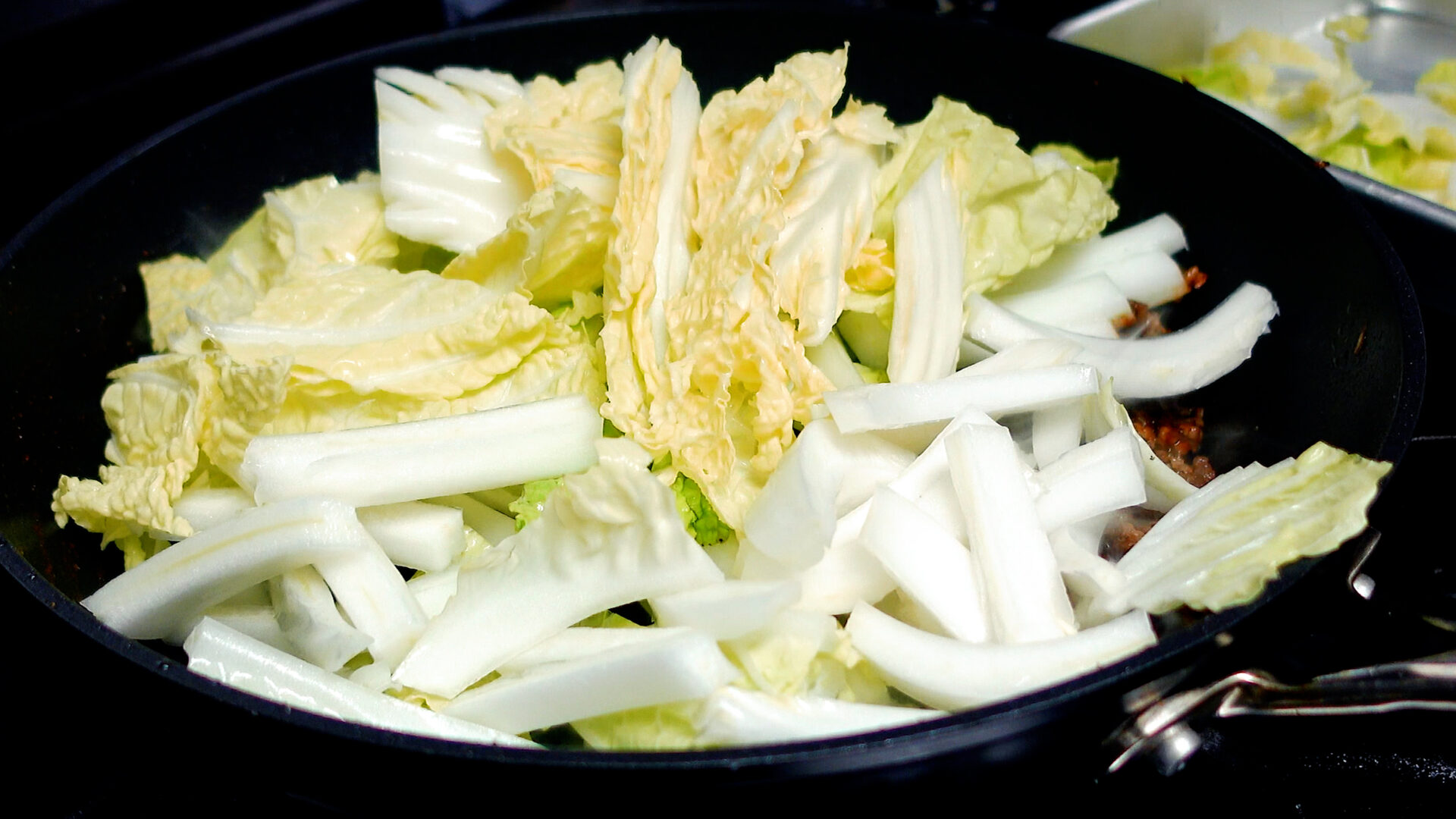 水分がなくなってきたら白菜を加え炒める。