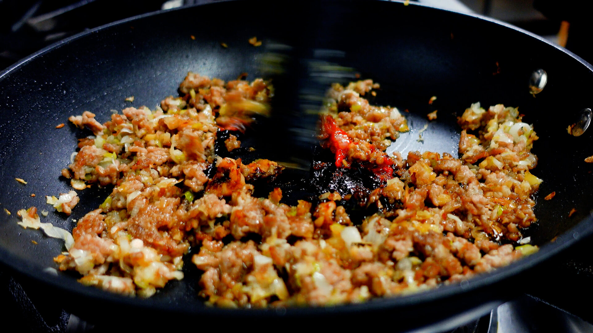 にんにく、しょうがの香りを立て調味料をよく炒めることで濃縮した味わいに!