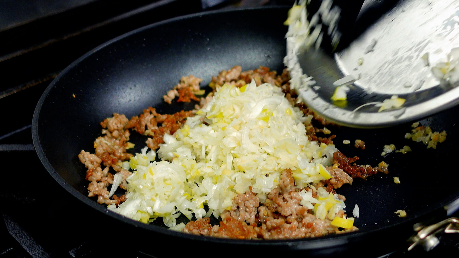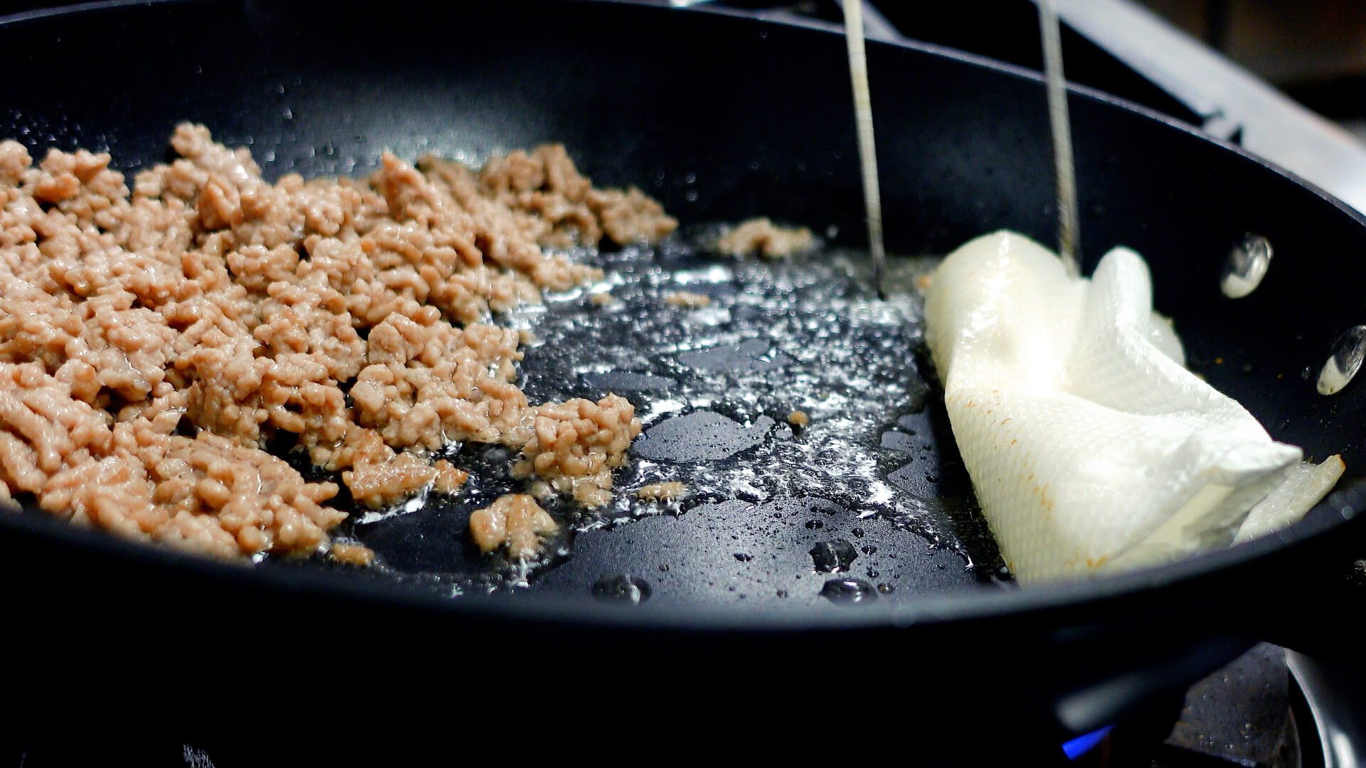 💡ひき肉は牛ひき肉、合いびき肉でもOK。豚ひき肉は炒めていると油が出てきます。この油はうまみでもあり臭みでもあるので、気になる場合は拭き取りましょう。