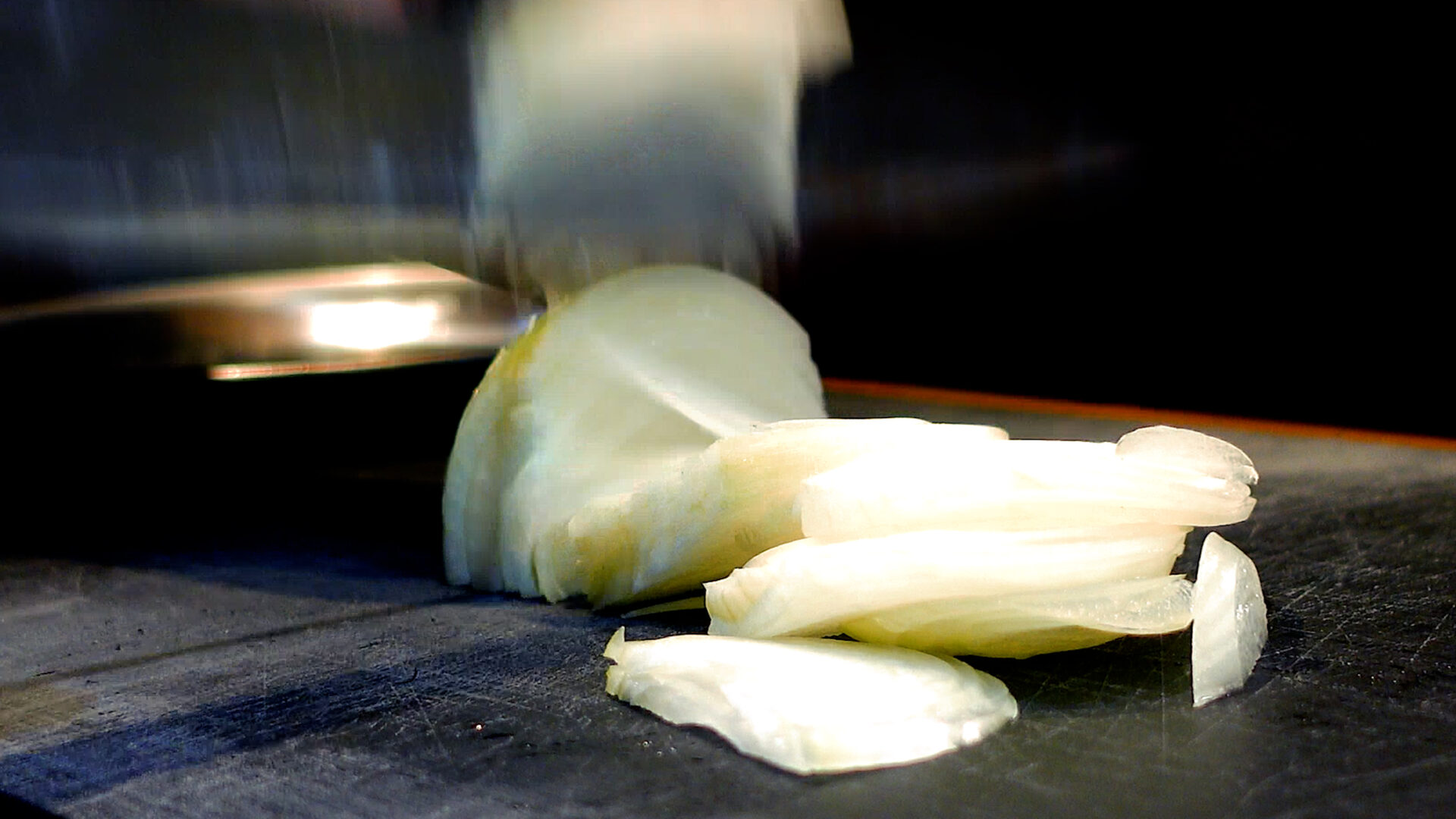玉ねぎは薄切りにする。