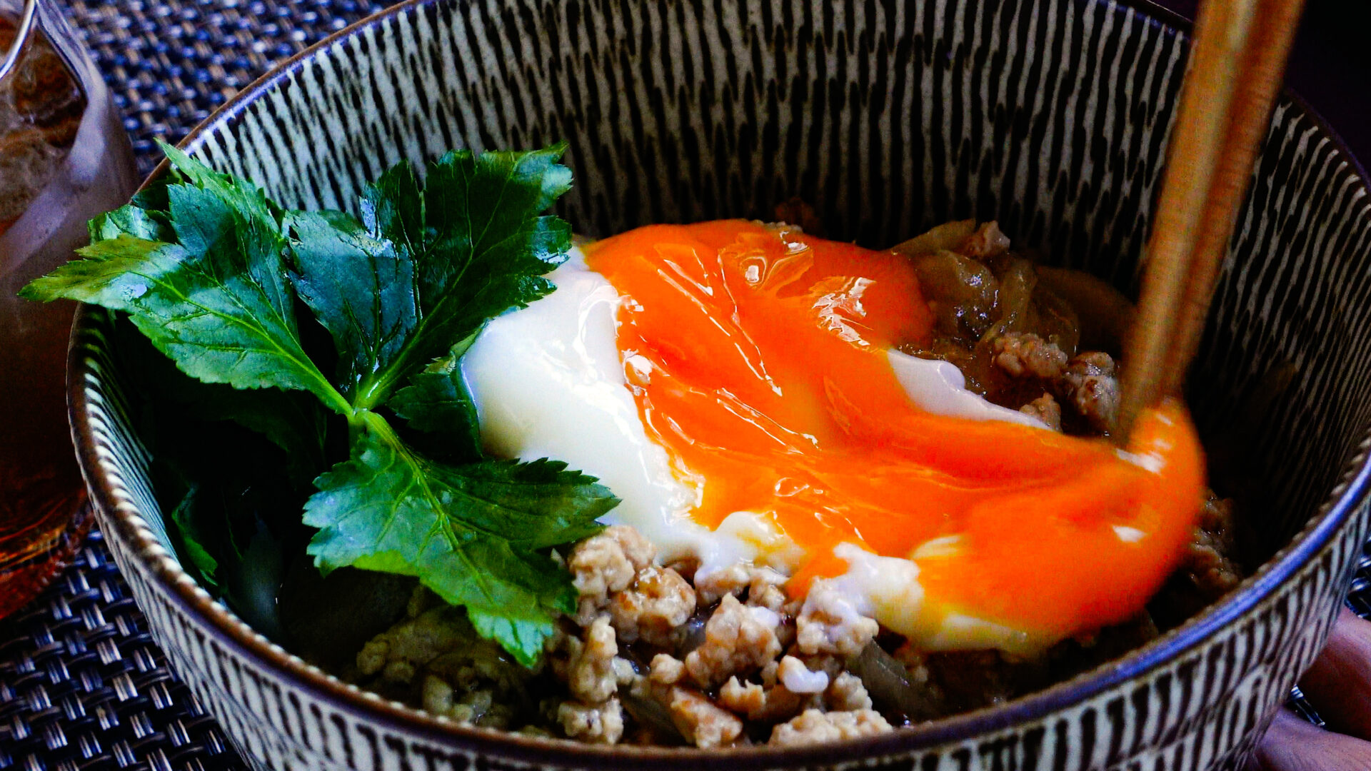 仕上げは温泉卵と三つ葉で完成!
