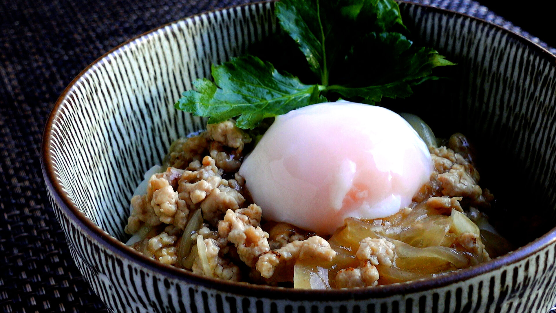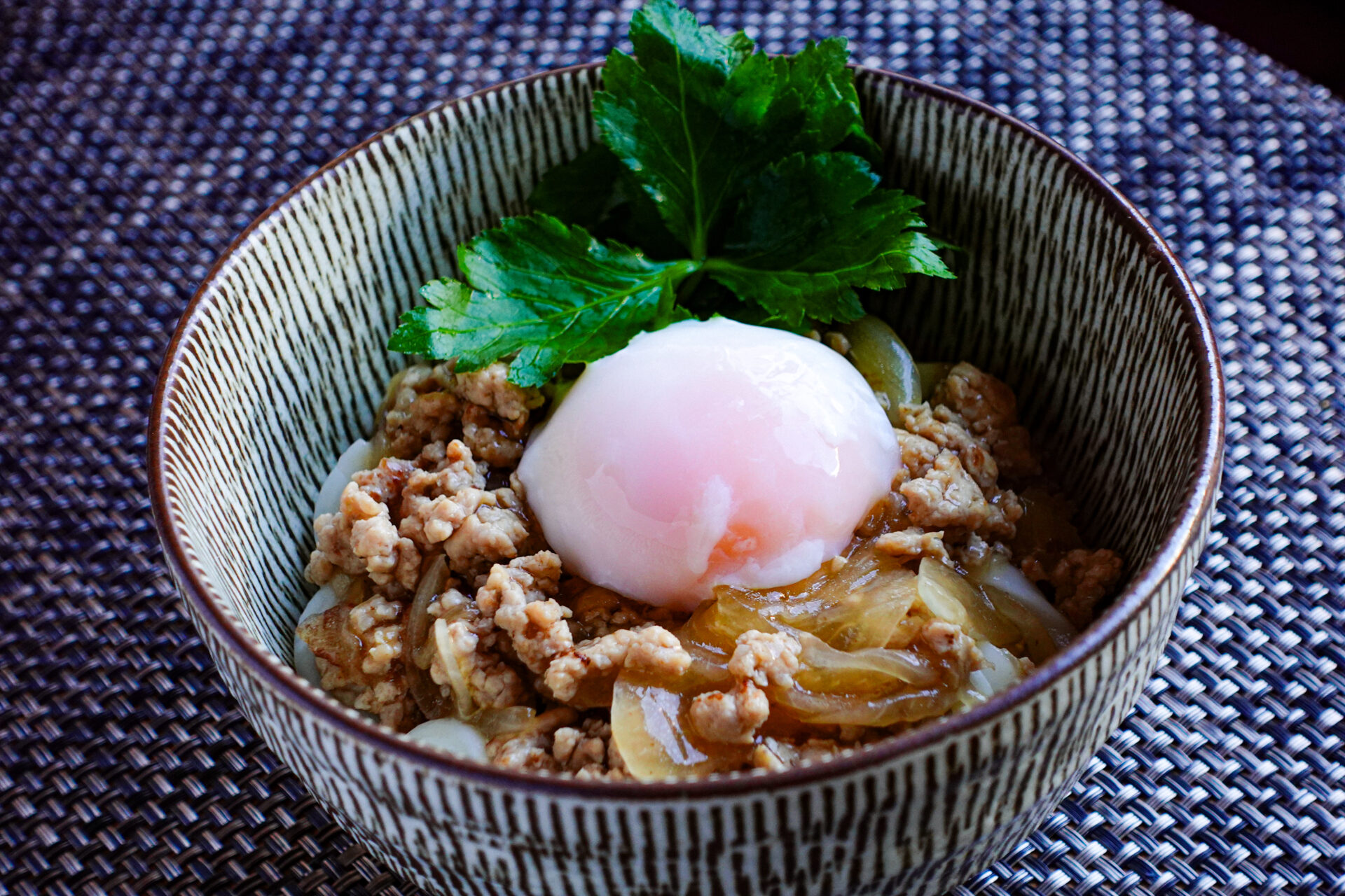 鶏ももひき肉のうま味が詰まったおつゆにとろみをつけて、熱々のうどんにたっぷりと。