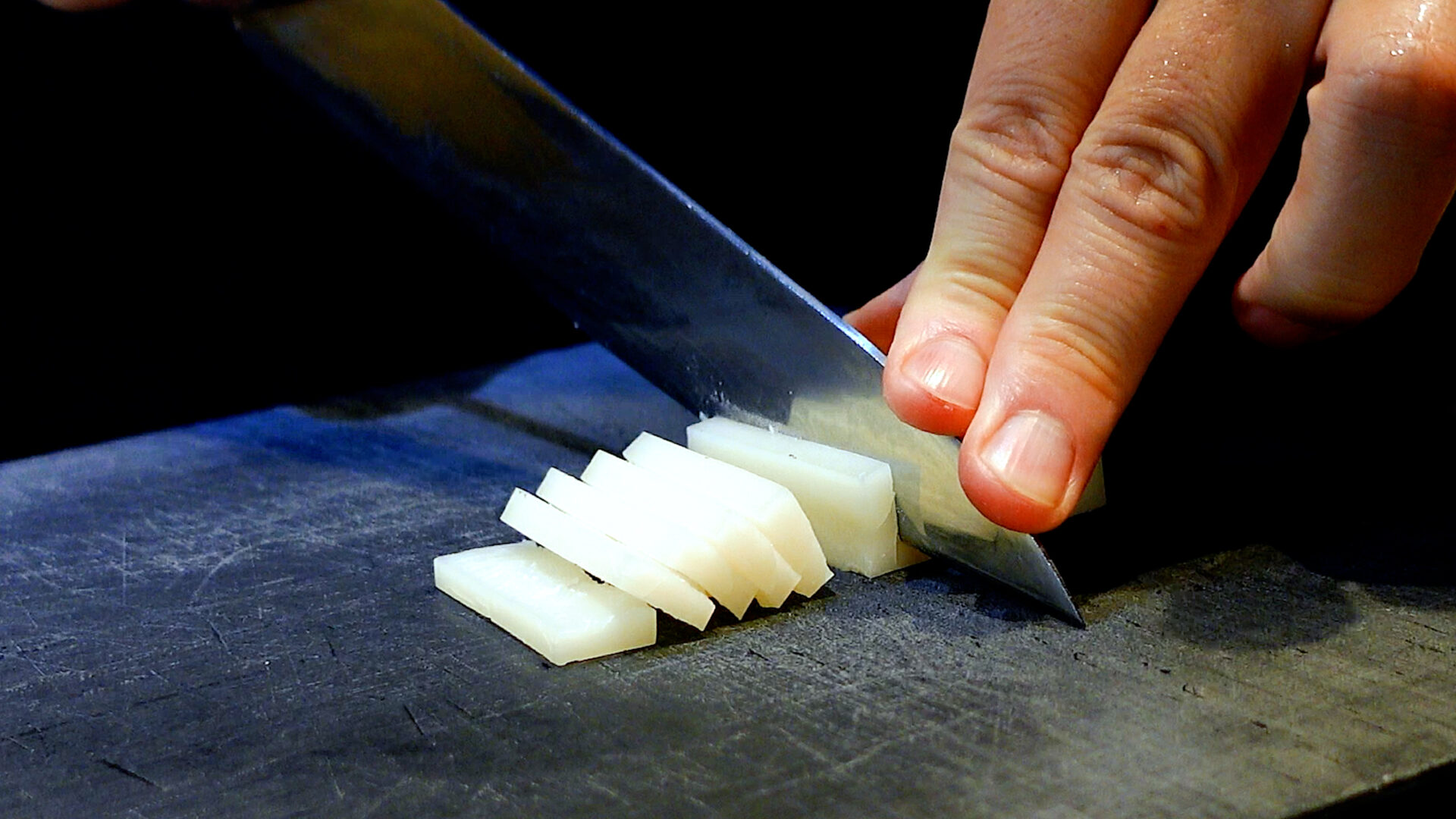 切り餅は2~3mmの薄切りにする。
