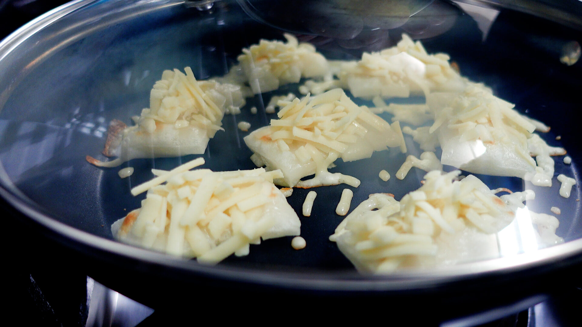 ミックスチーズをのせ、蓋をしてチーズを溶かす。