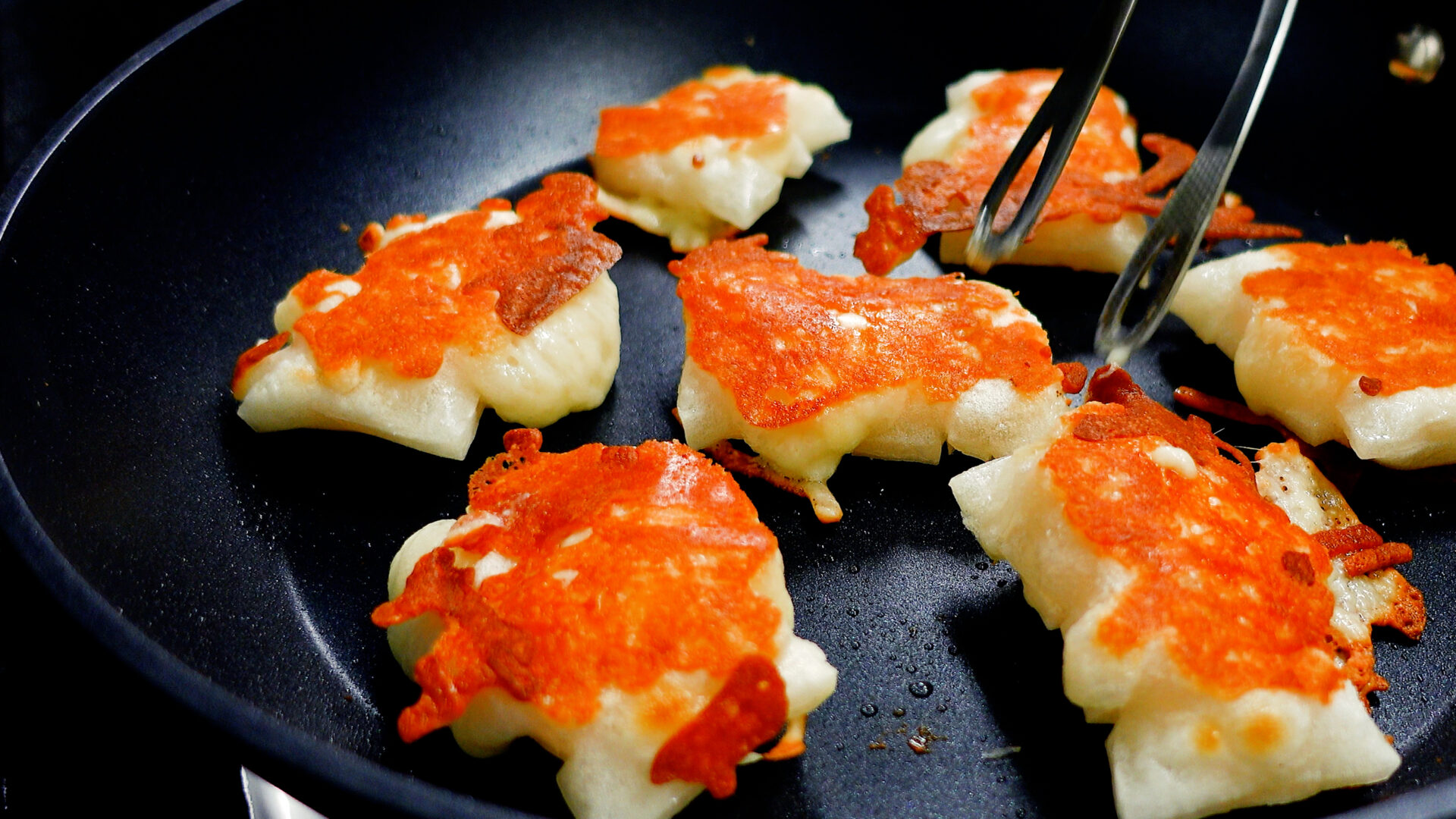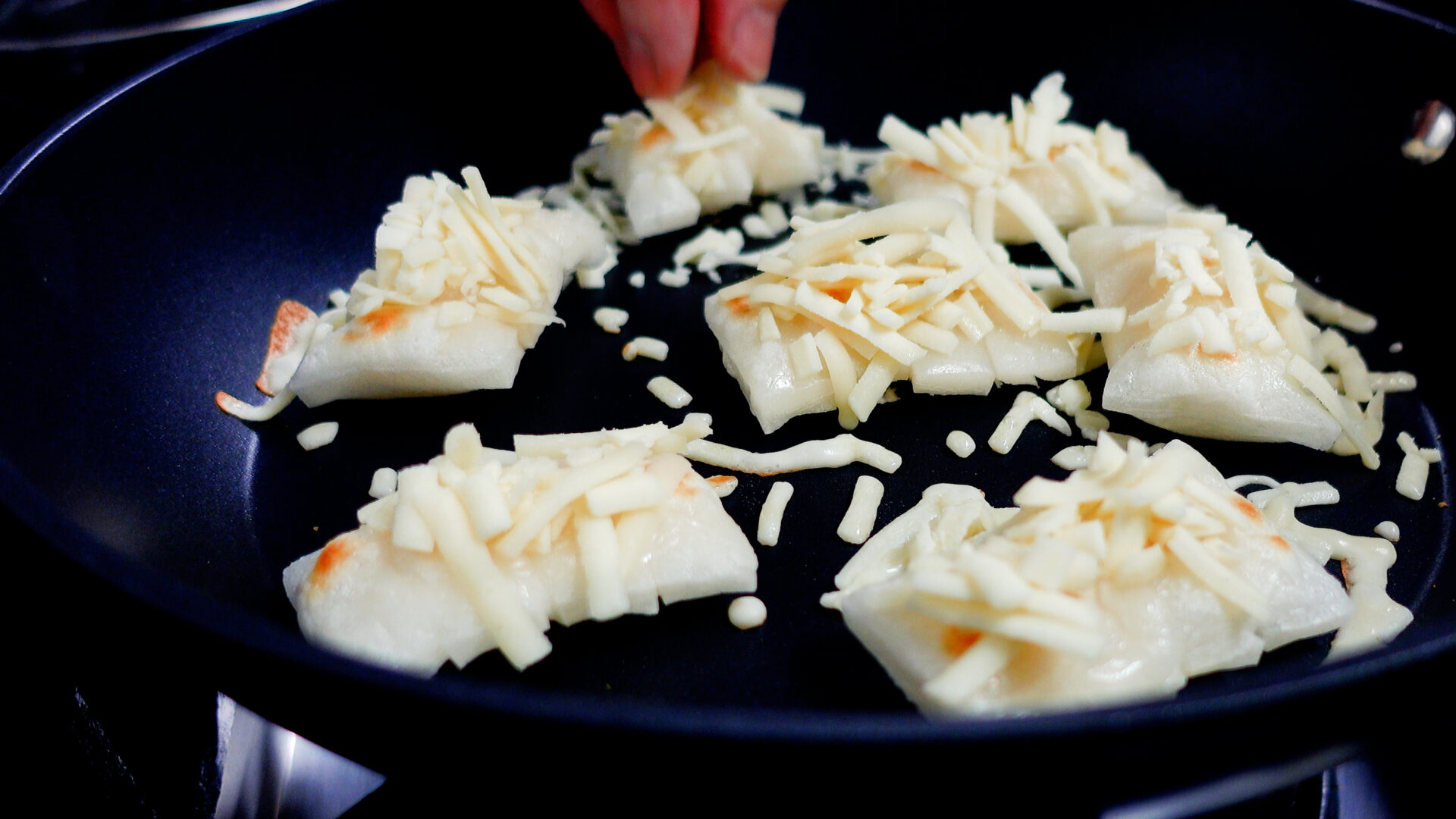 チーズが溶けてきたらひっくり返し、チーズにこんがり焼き目がついたら取り出す。