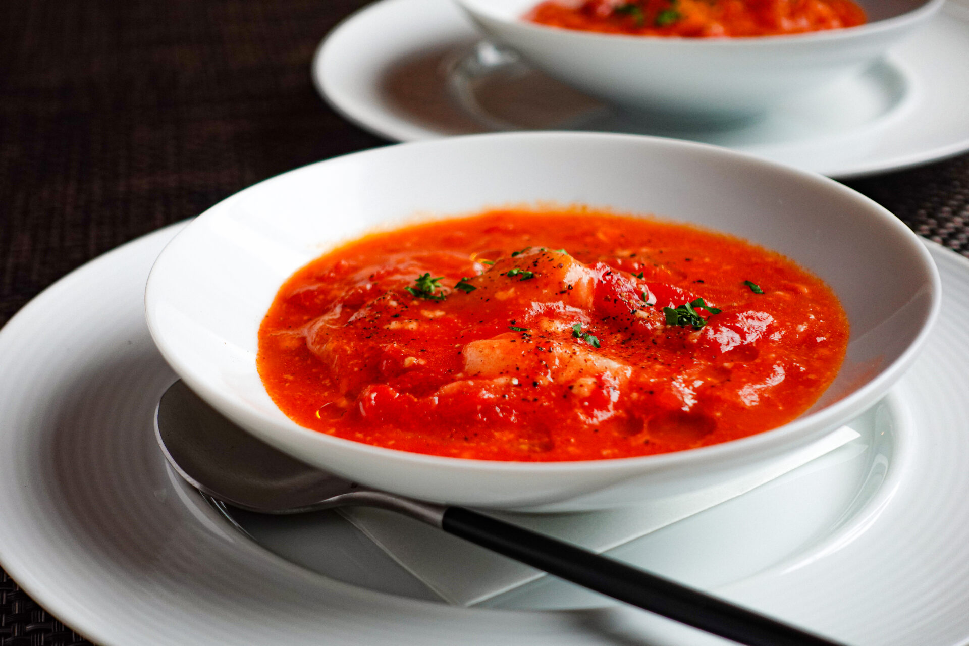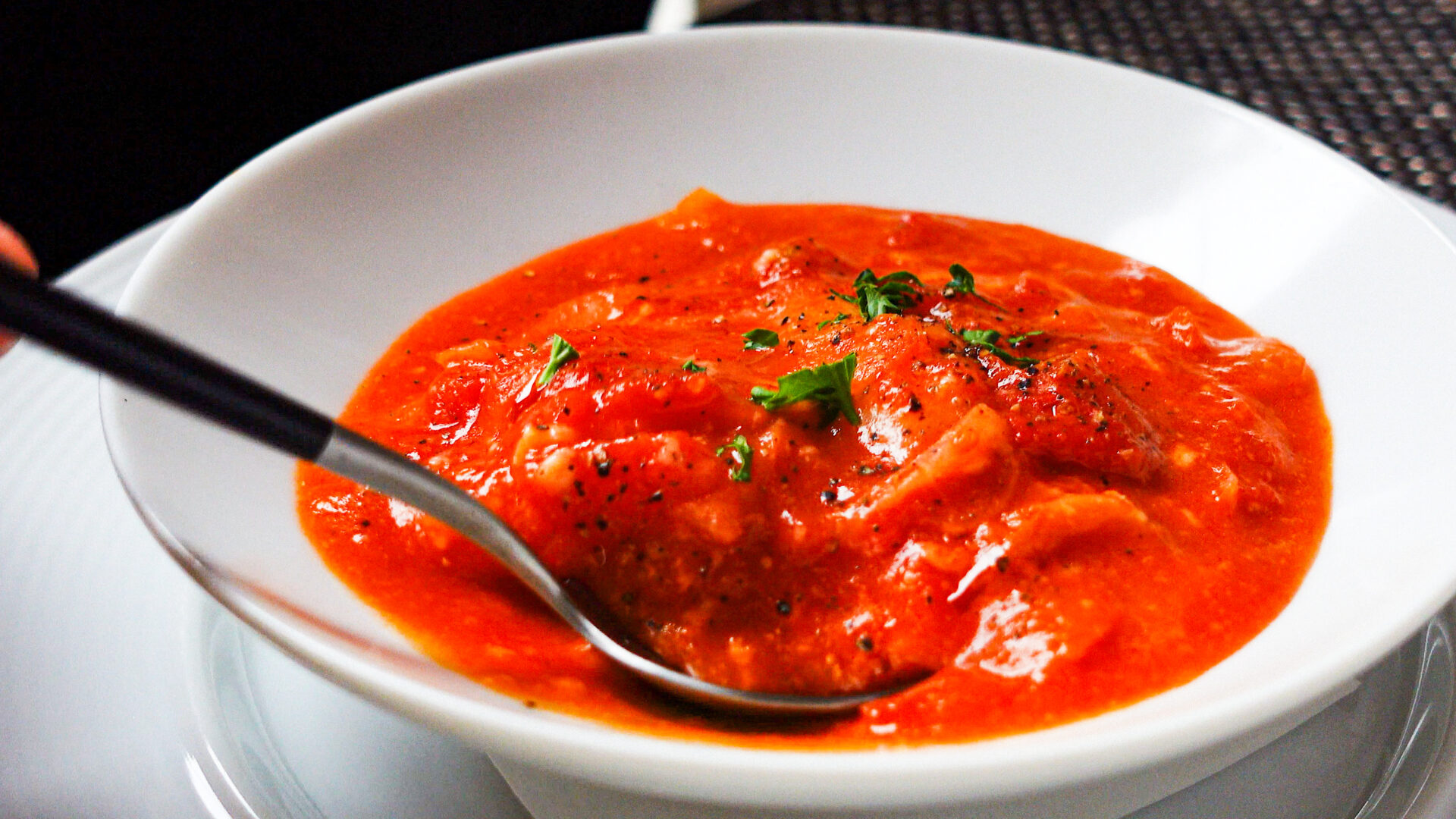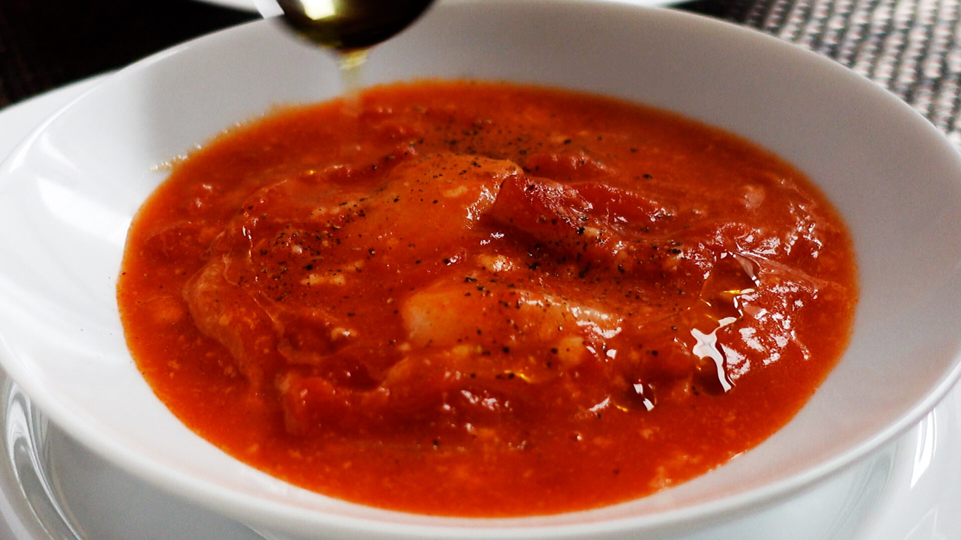 💡ホールトマト缶を使う場合は、あらかじめつぶしておいてください。💡水の量はお好みで。サラサラのスープにしたい場合は250~300mmほど加えてもOKです!