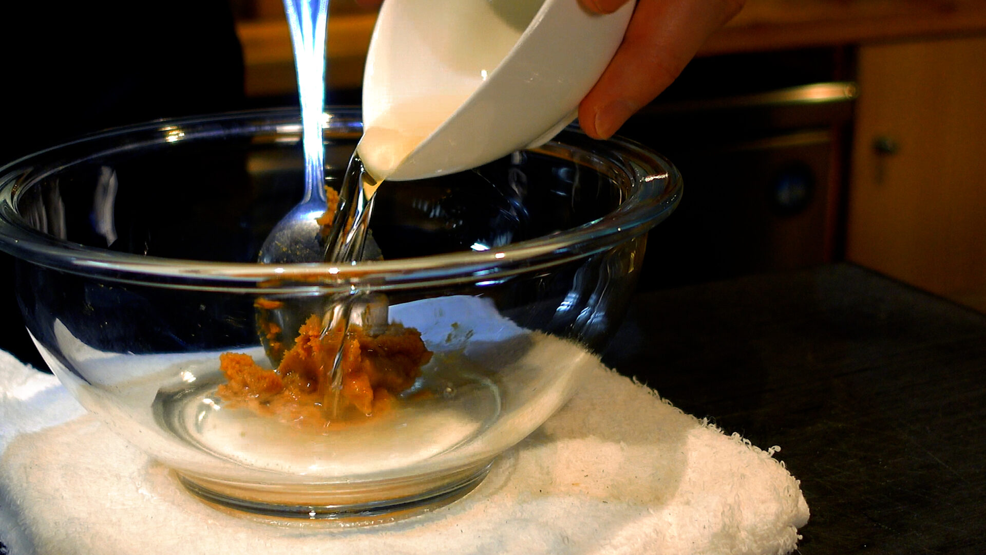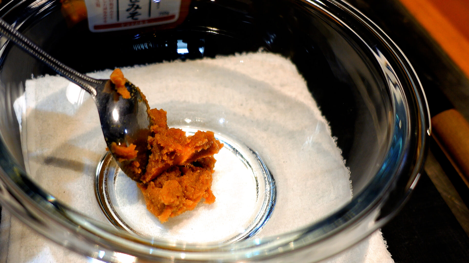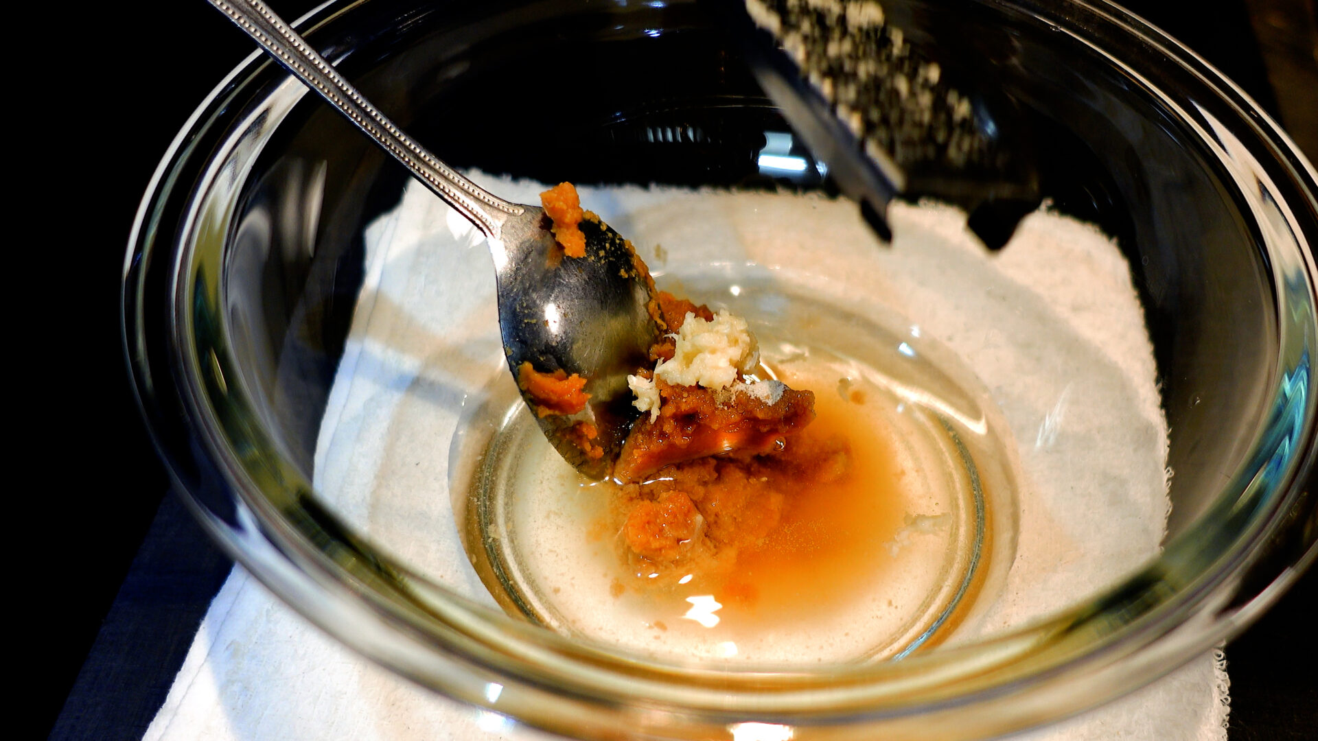 ボウルに◆合わせみそ 大さじ2、料理酒 大さじ2、みりん 大さじ1、砂糖 小さじ1、おろしにんにく 小さじ1/2を入れ混ぜ合わせる。