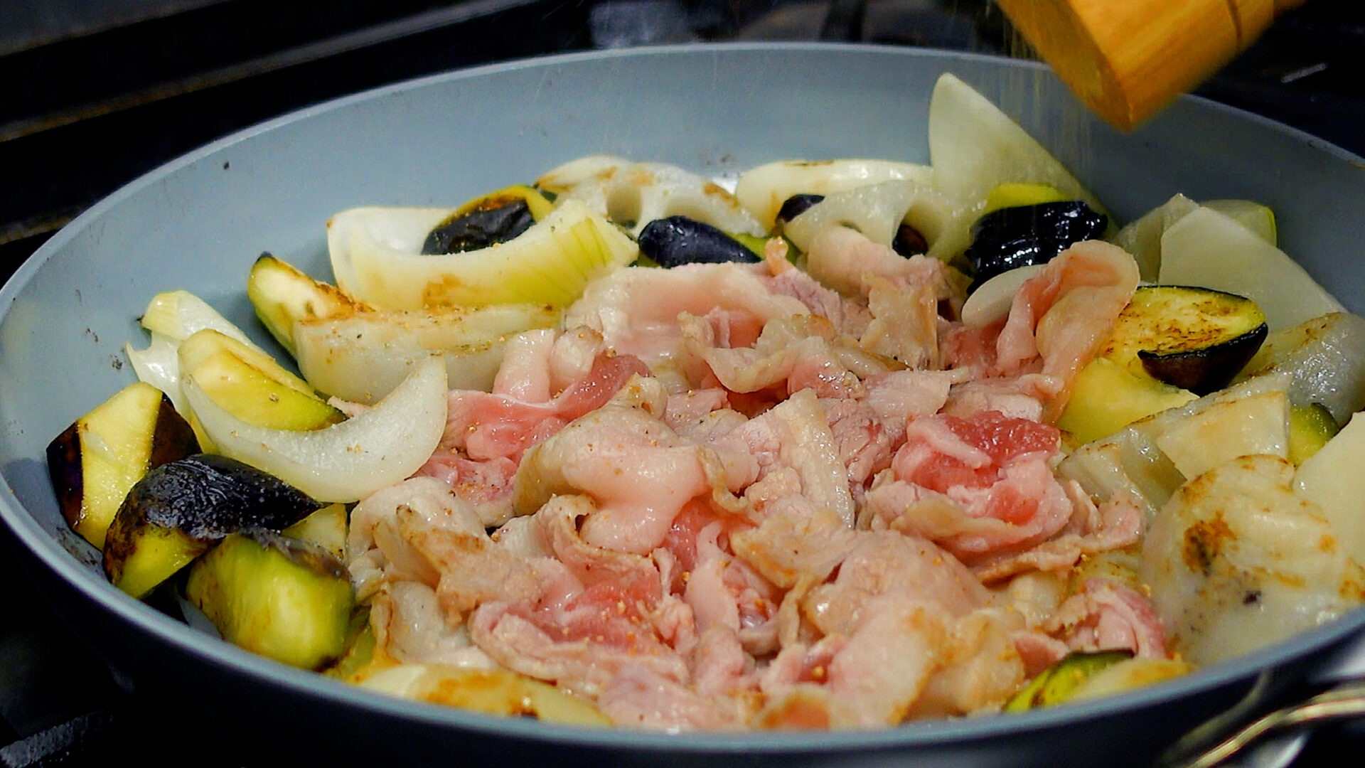 【豚バラとなすのみそ生姜焼き】紹介します!