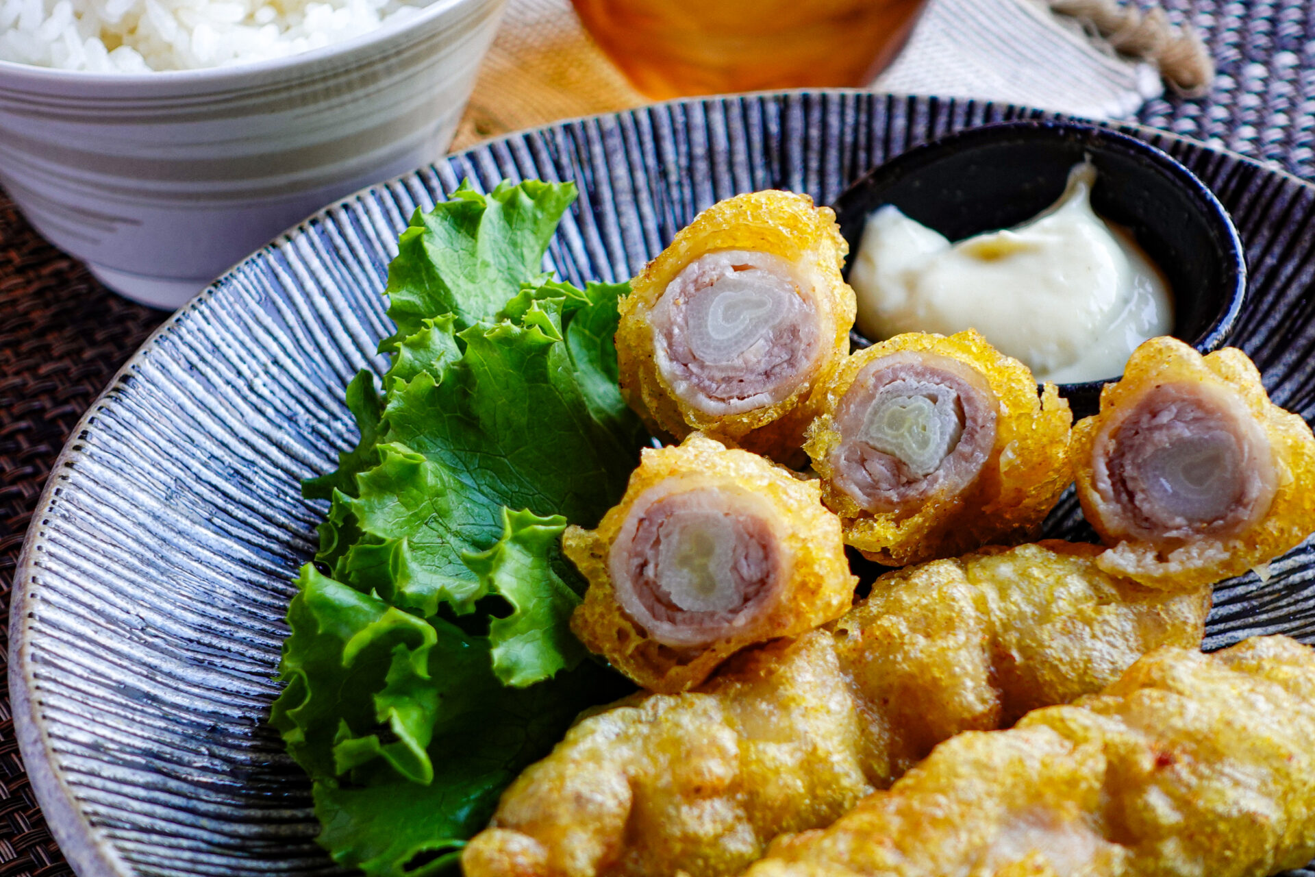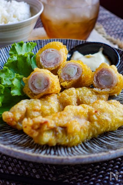 【白米泥棒】豚肉で巻くからウマい『長ねぎの豚巻きフリット』カリッと衣で長ねぎの甘みと豚肉のうま味を閉じ込めました。カレー風味も食欲そそるポイント!