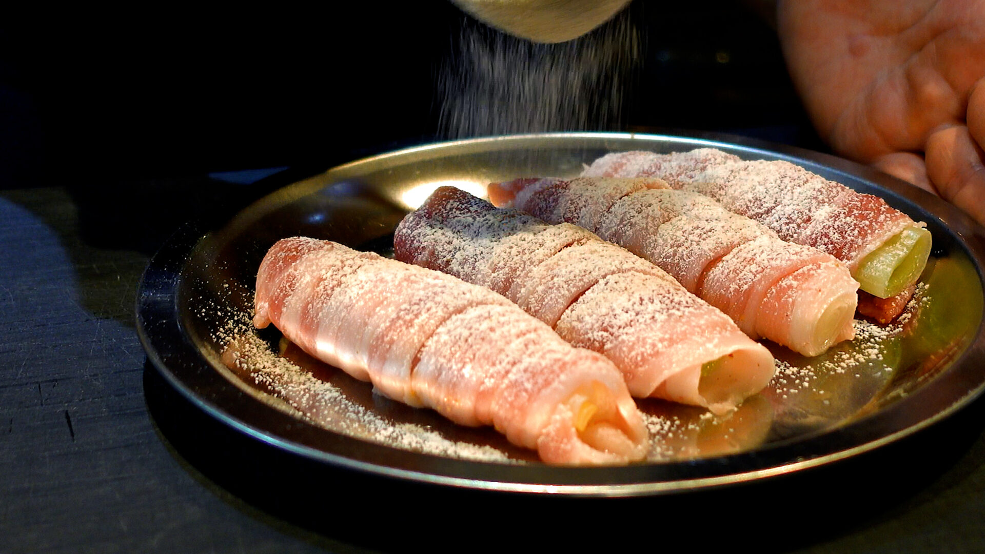 すべて巻いたら、全面に薄力粉を薄くまんべんなくまぶす。