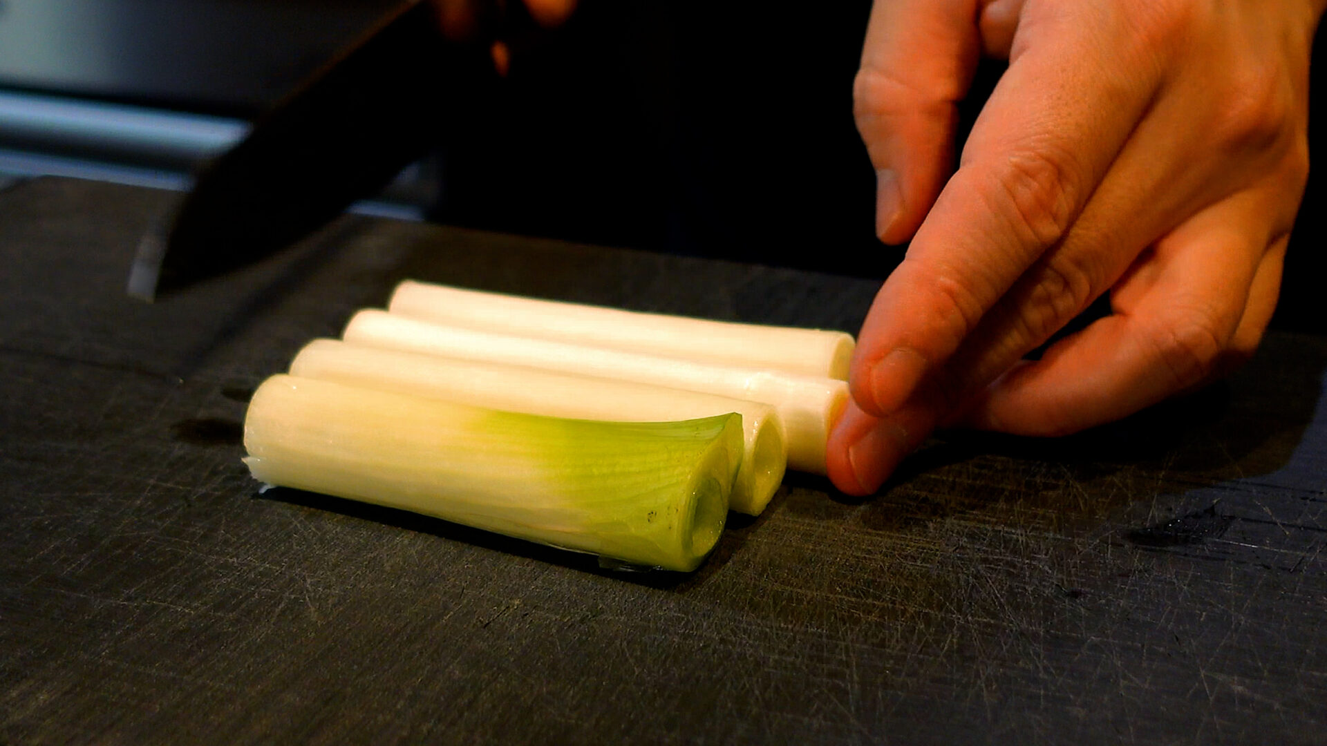 長ねぎは4等分に切る。