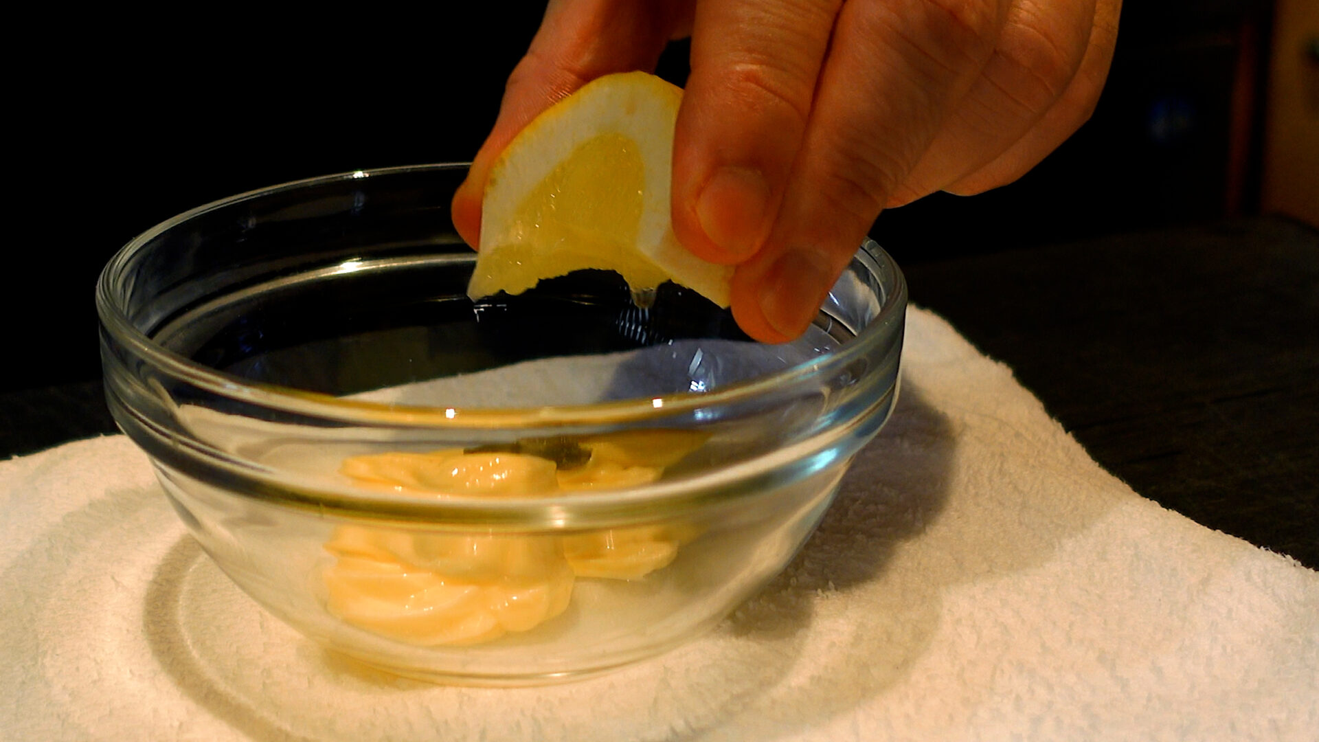 ボウルに◇マヨネーズ 大さじ2、柚子こしょう 小さじ1/2、レモン汁 少々を入れ混ぜる。