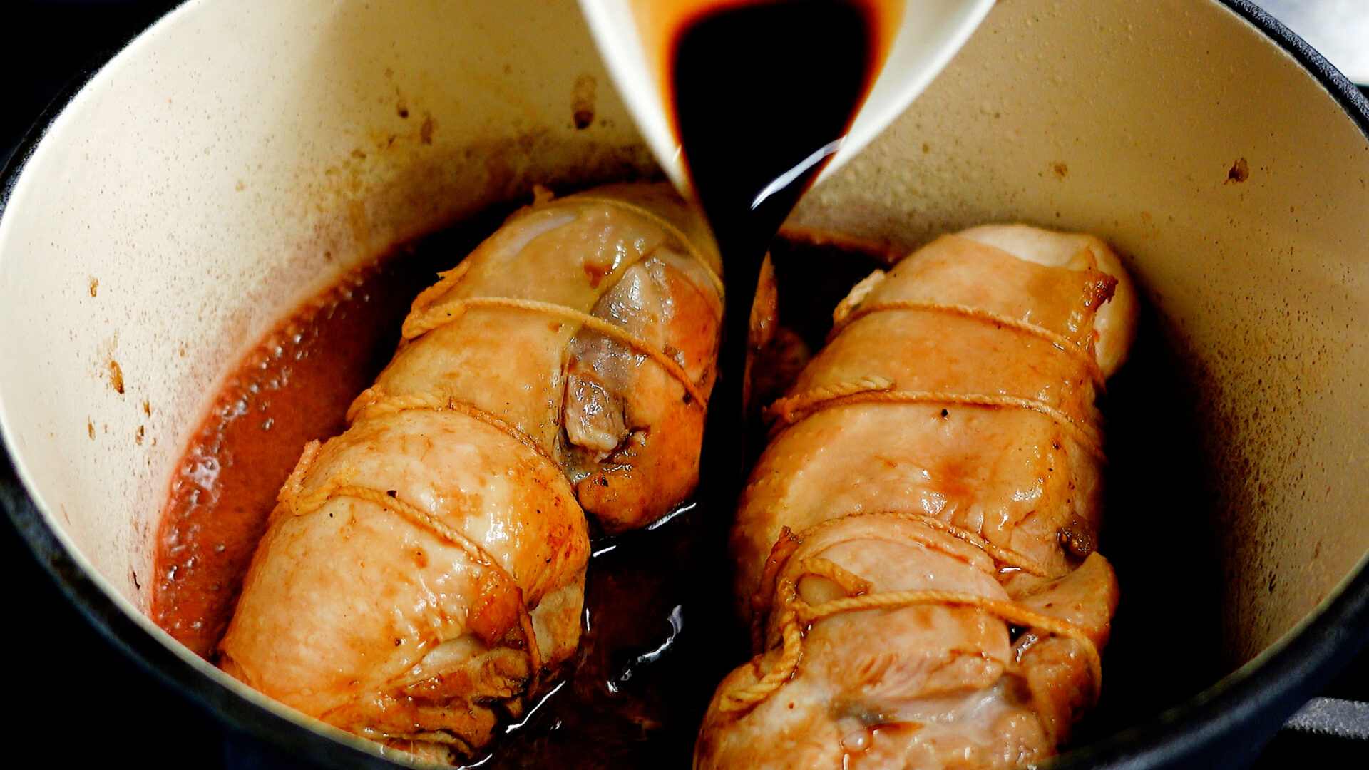 特別な日の一皿『ロールチキンの赤ワイン煮』