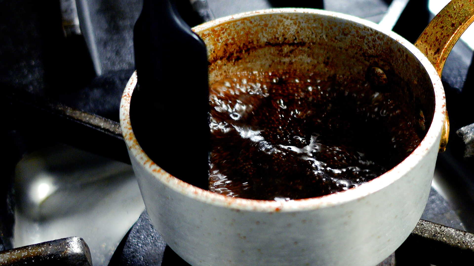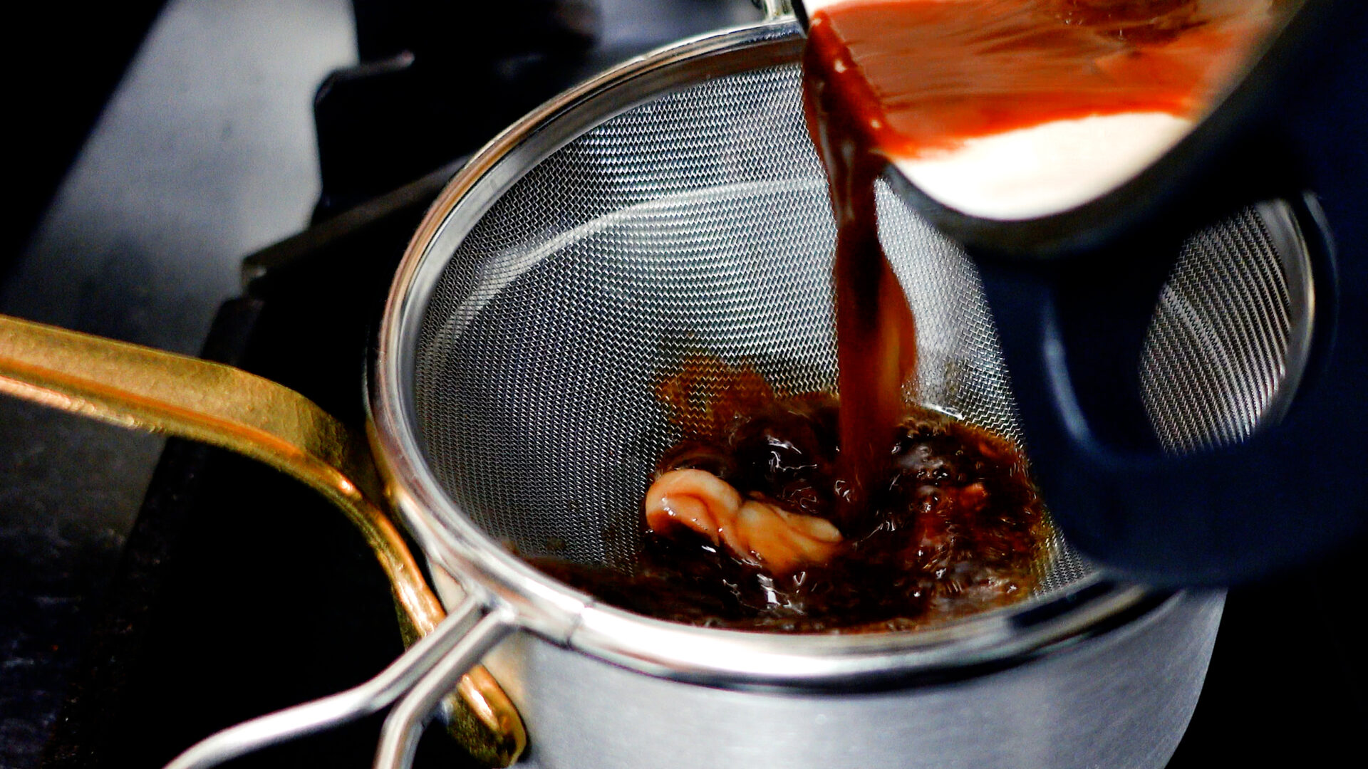 タレをザルでこし、中火にかける。タレが半量くらいになり、すこしとろみがつくまで煮詰める。