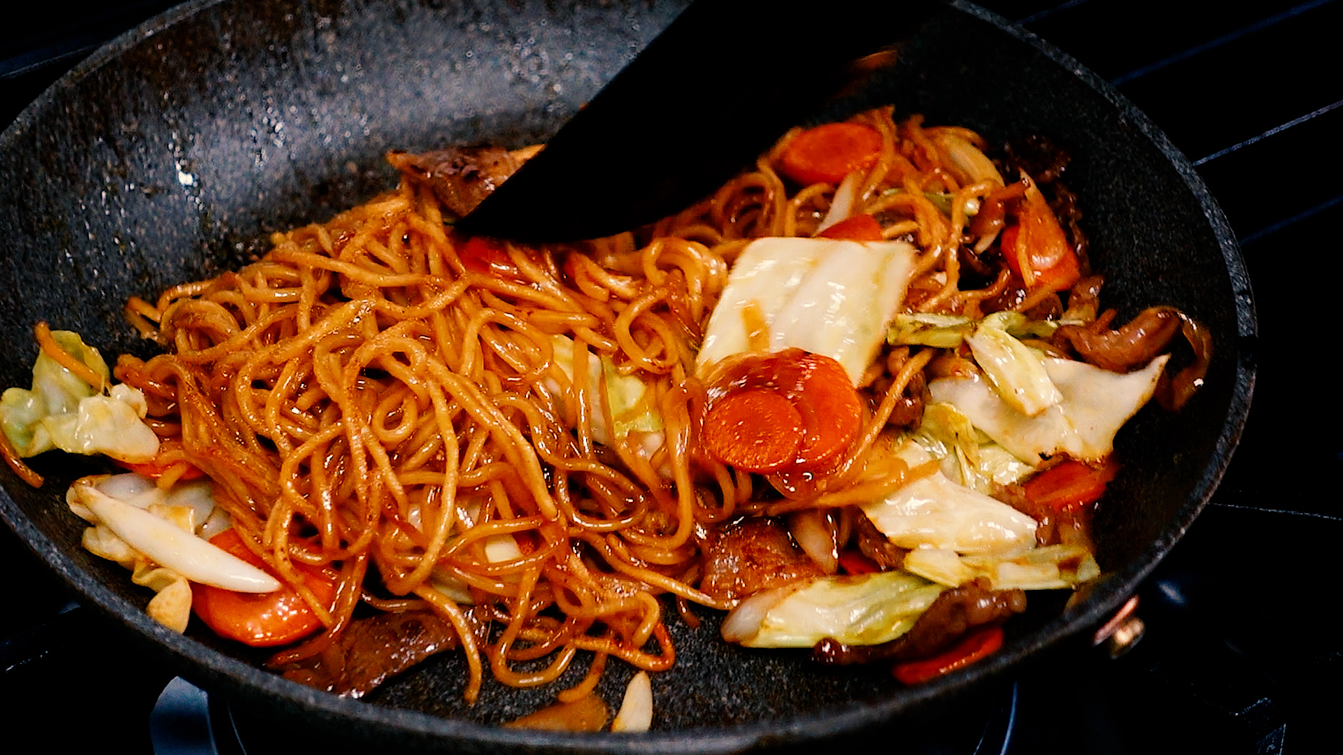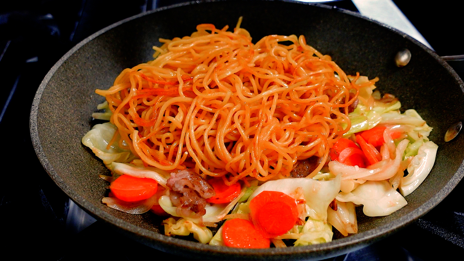 💡麺を先に炒め焼き目をつけておくことで、カリッと食感を楽しめます。