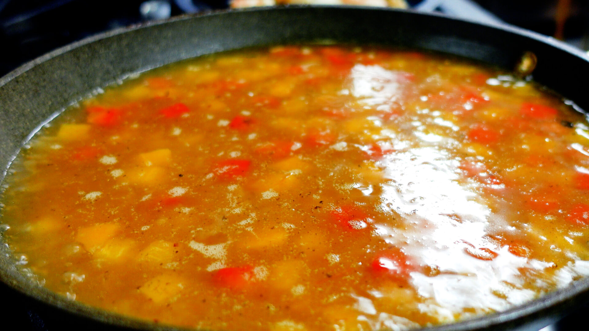 パチパチと音がしてきたらコンソメスープを加え、全体をかるく混ぜ合わせる。沸騰したら弱火にし、約20分煮込む。