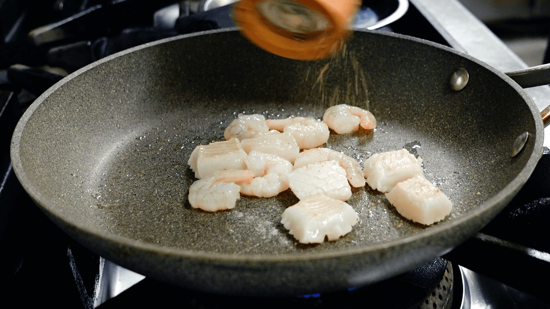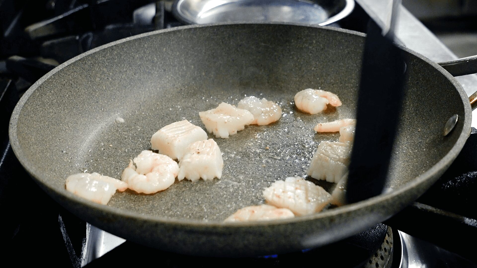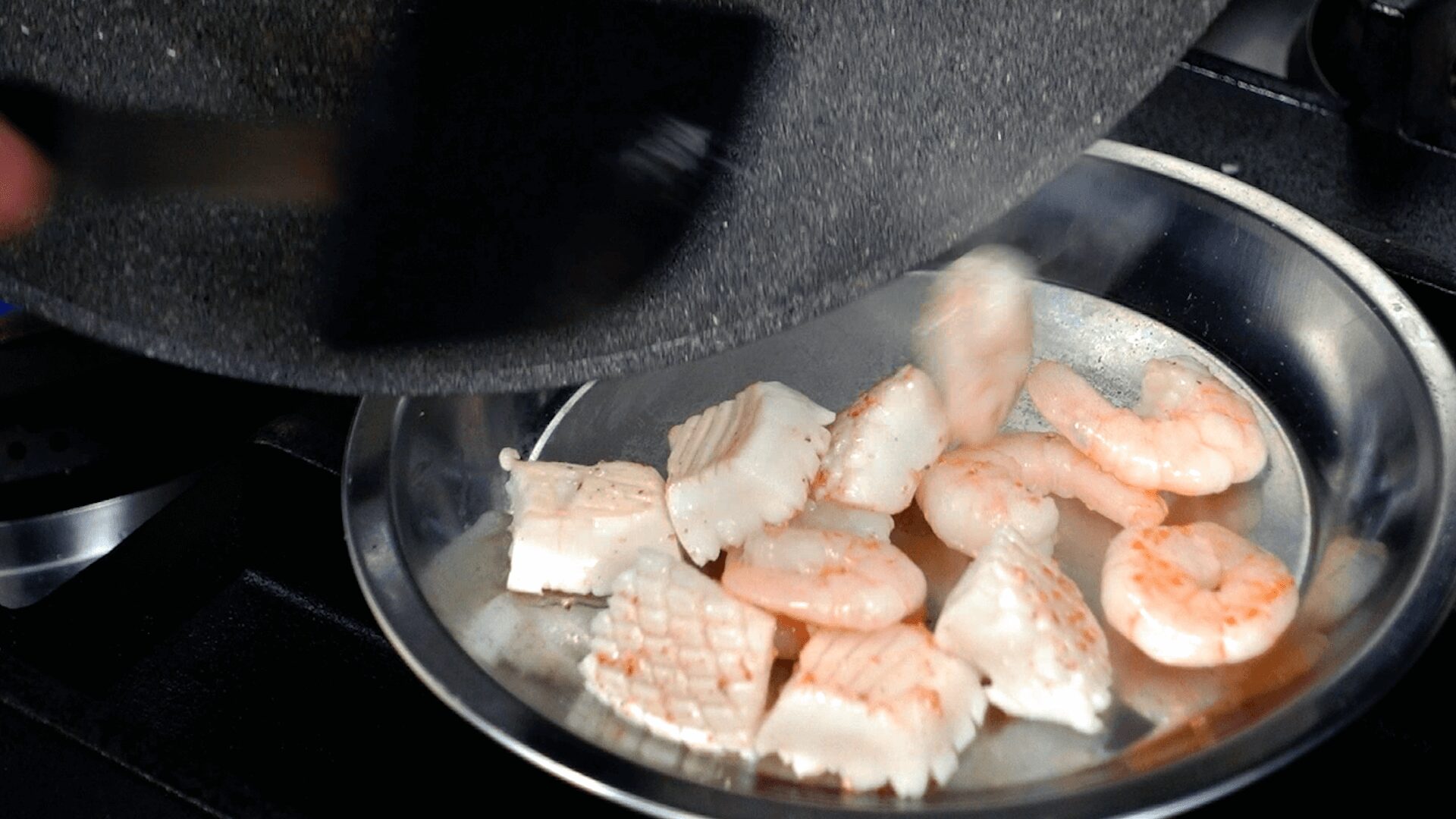 💡海鮮はいったん取り出すことで固くなりすぎないようにします。