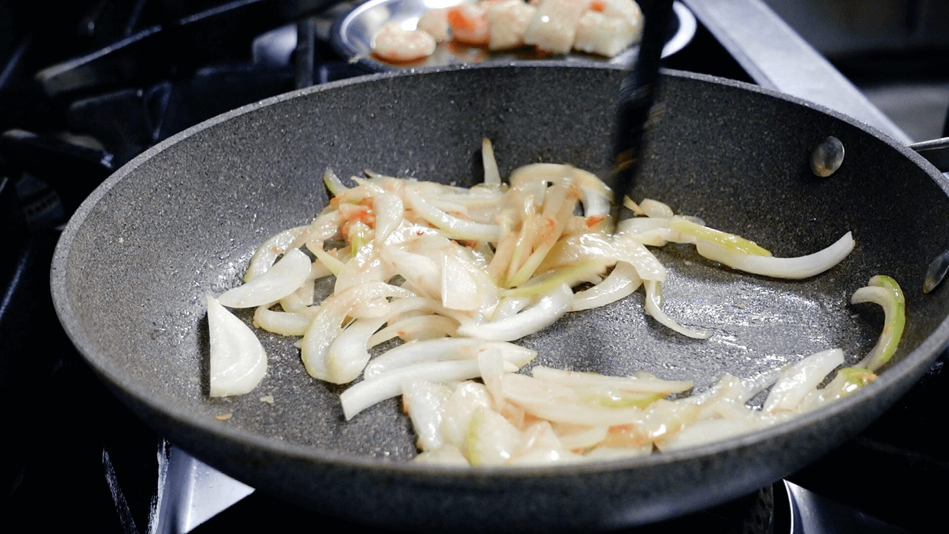 💡冷凍のシーフードミックスを使う場合は、解凍してから使用し、ある程度炒めたら料理酒 大さじ1を加え(臭みを抜くため)水分を飛ばすように炒めます。