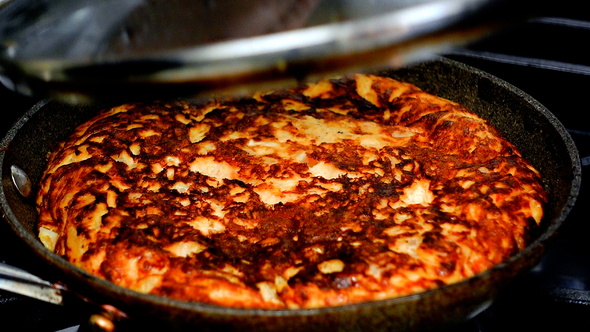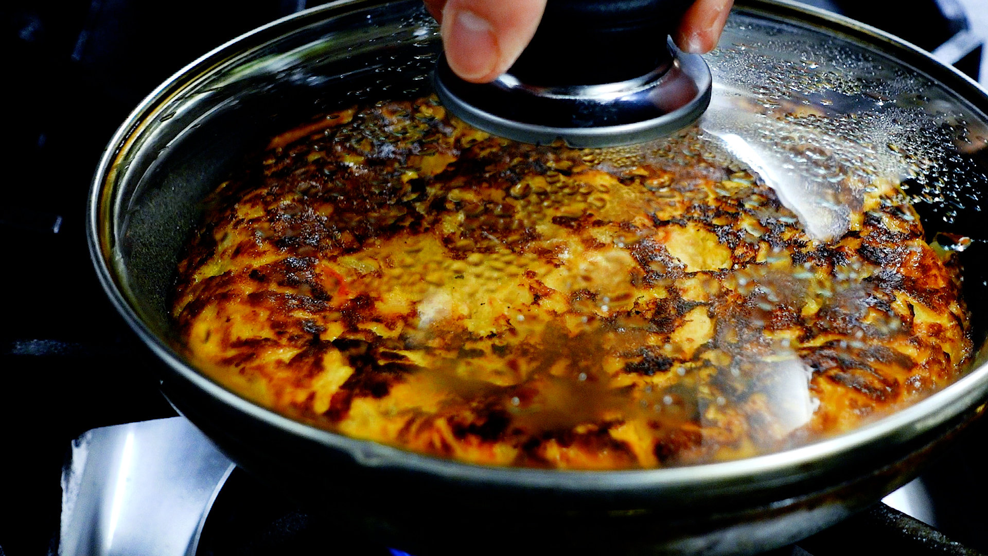 焼き目がついたらひっくり返す。極弱火のまま蓋をし、さらに3分蒸し焼きにする。