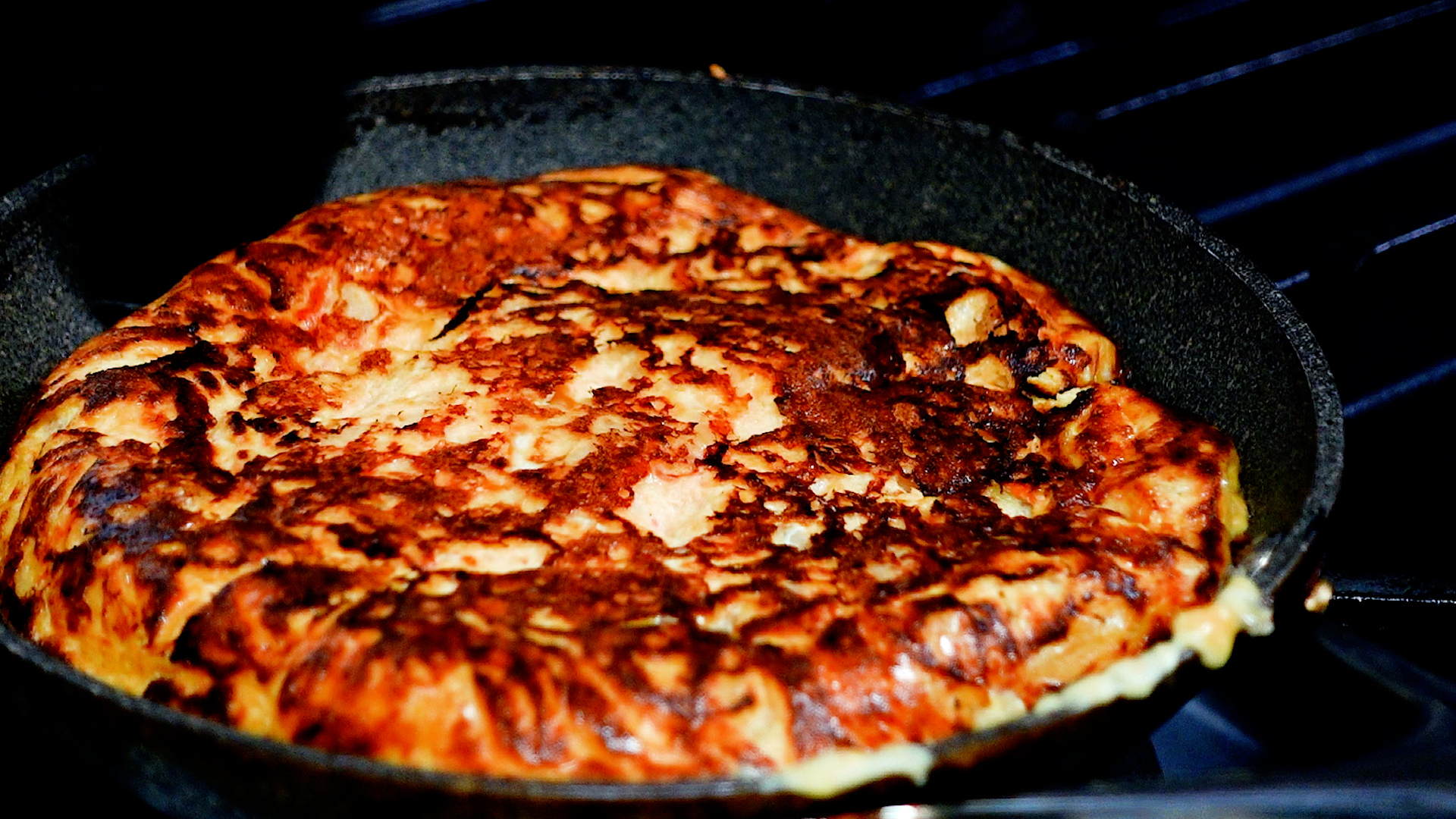 3分後、もう一度ひっくり返し焼き目を確認する。