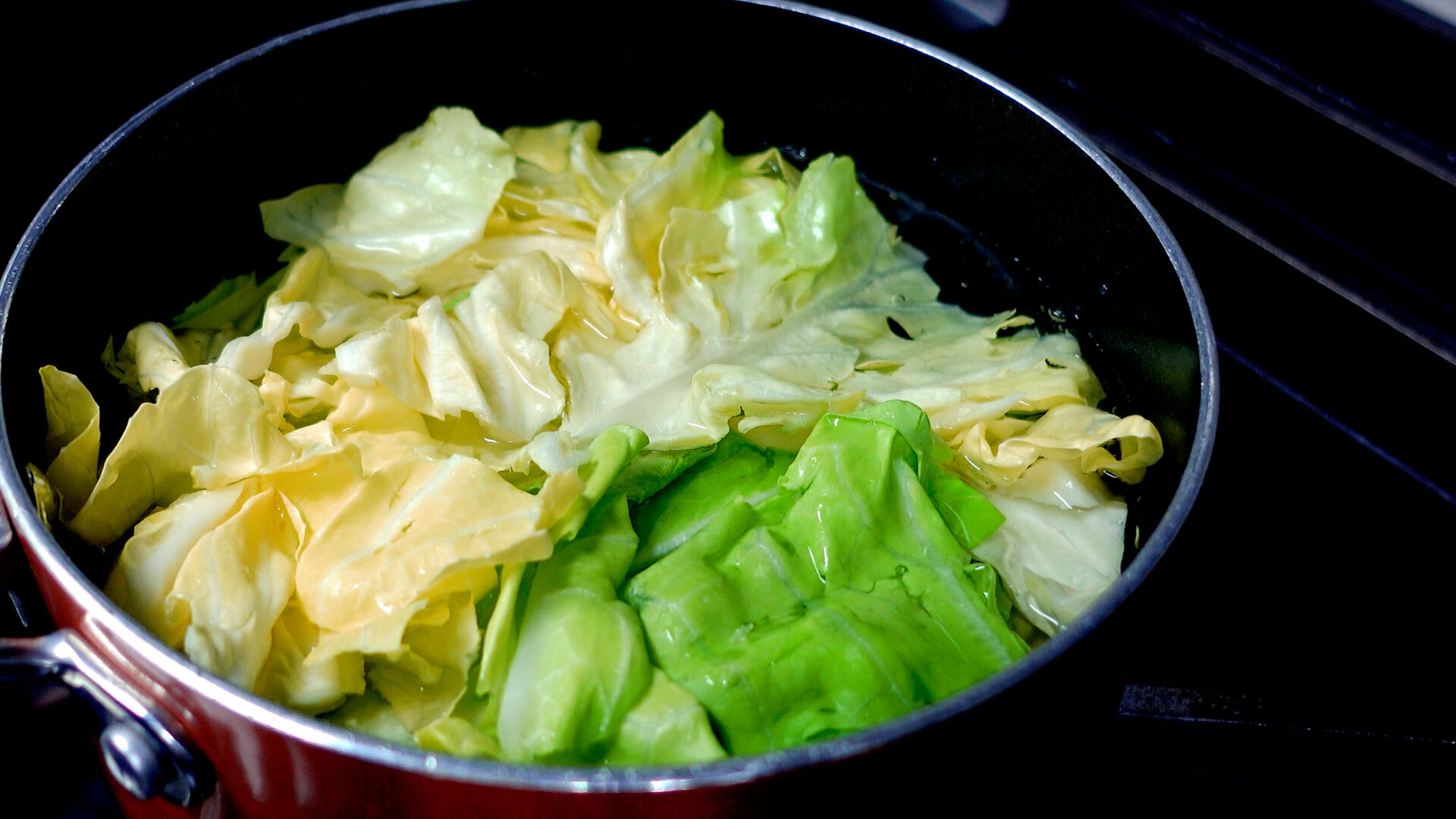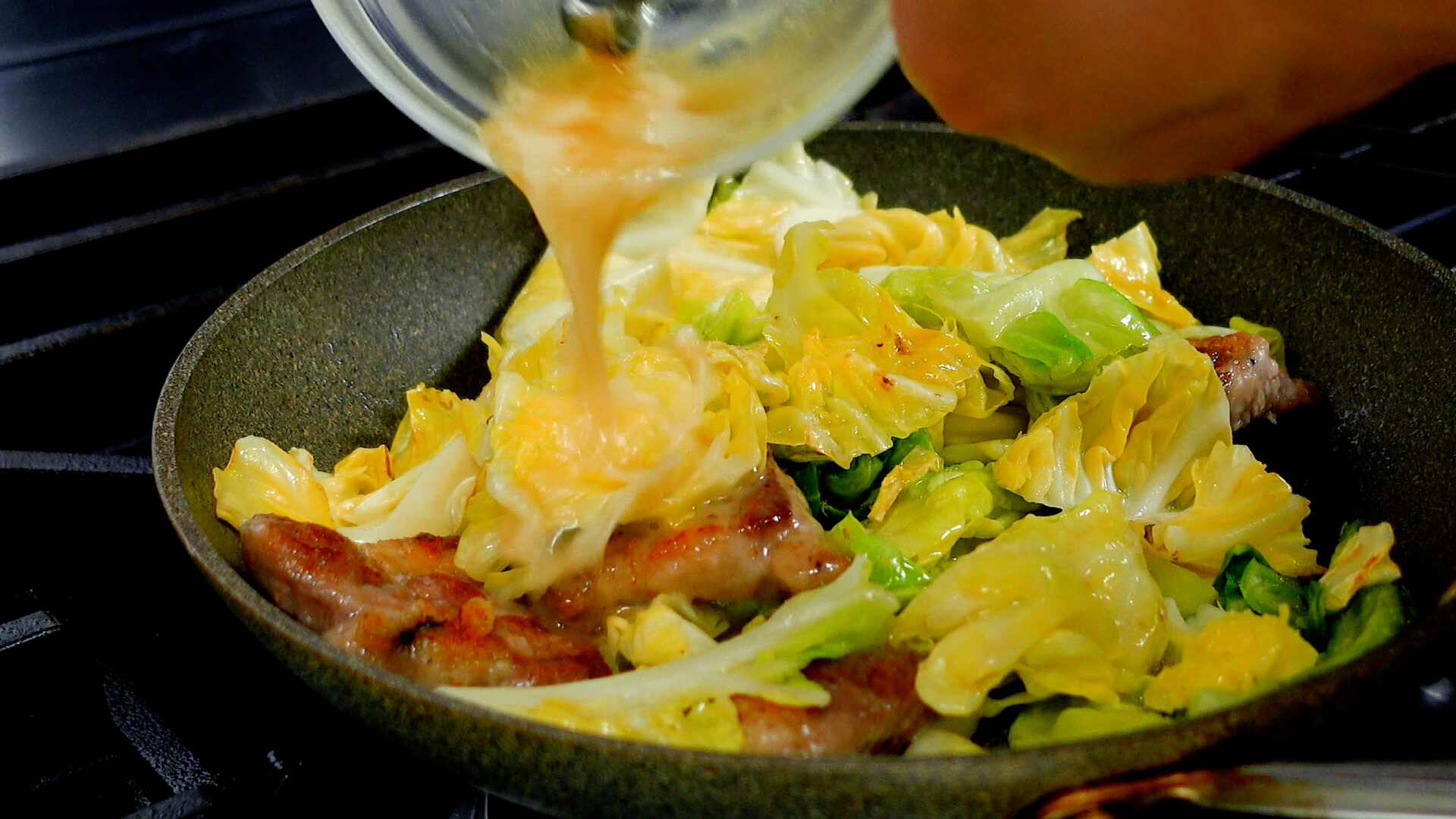 キャベツはサッとゆでて甘みをアップ!豚肉はじっくり焼き、うま味を引き出します。