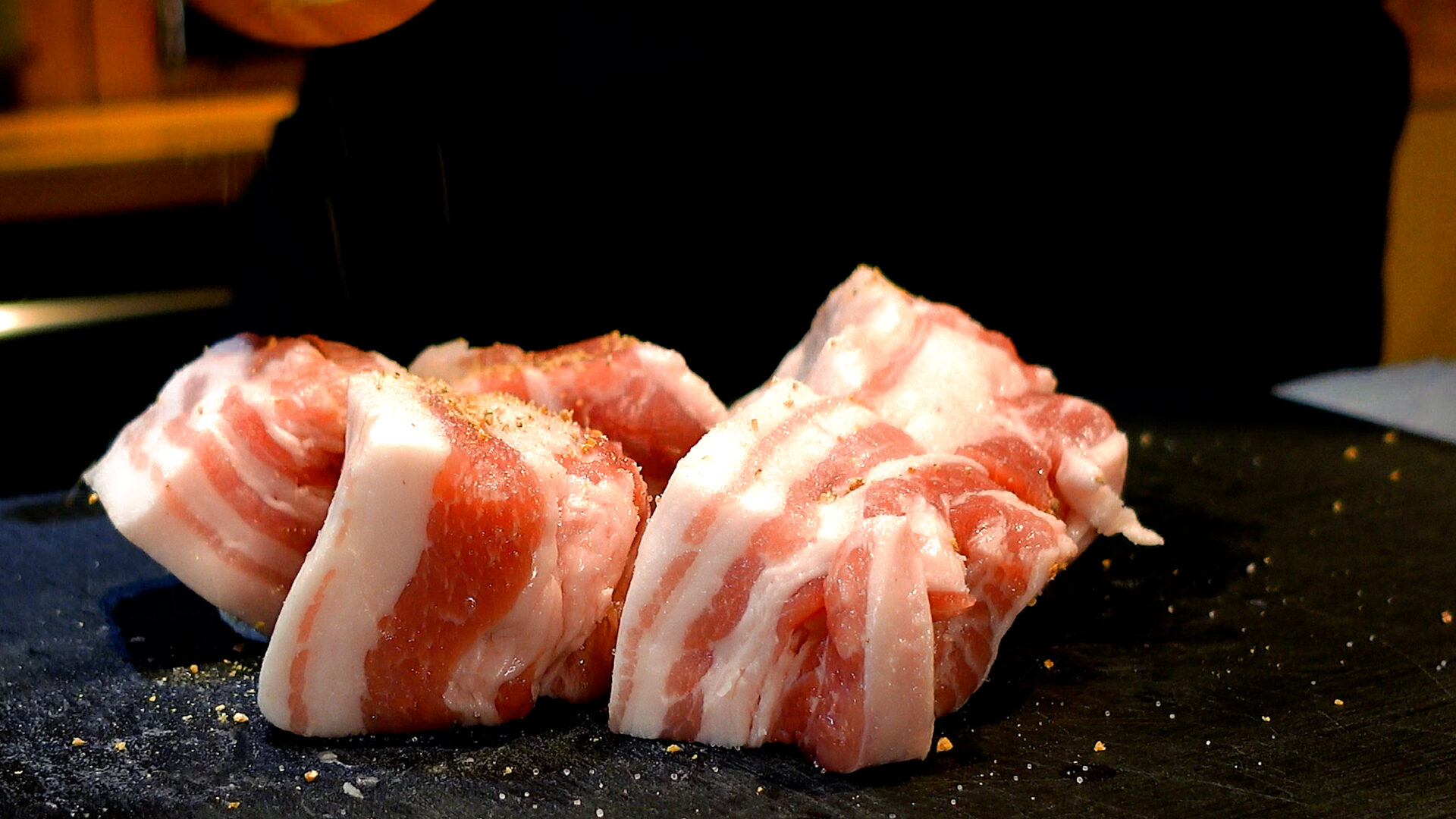 💡こしょうをしたあとは、手でかるく押さえると焼いたときに取れにくくなります。