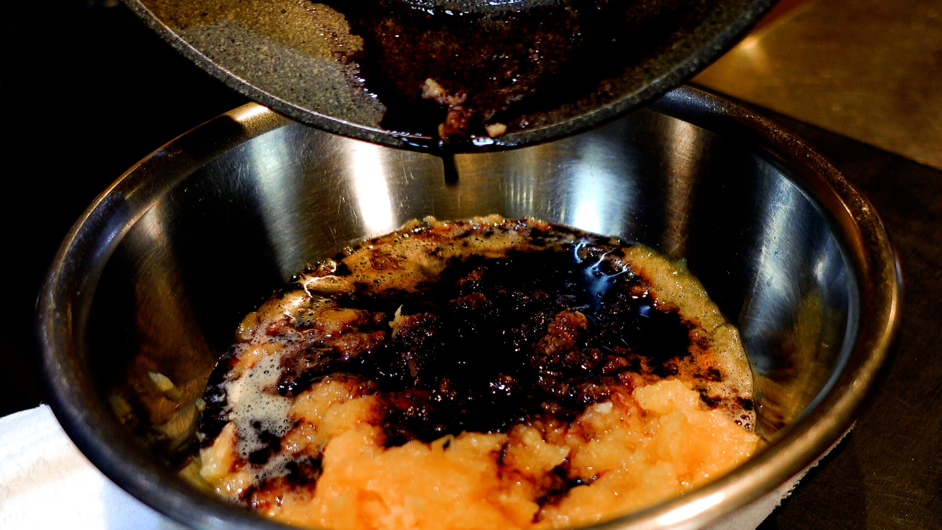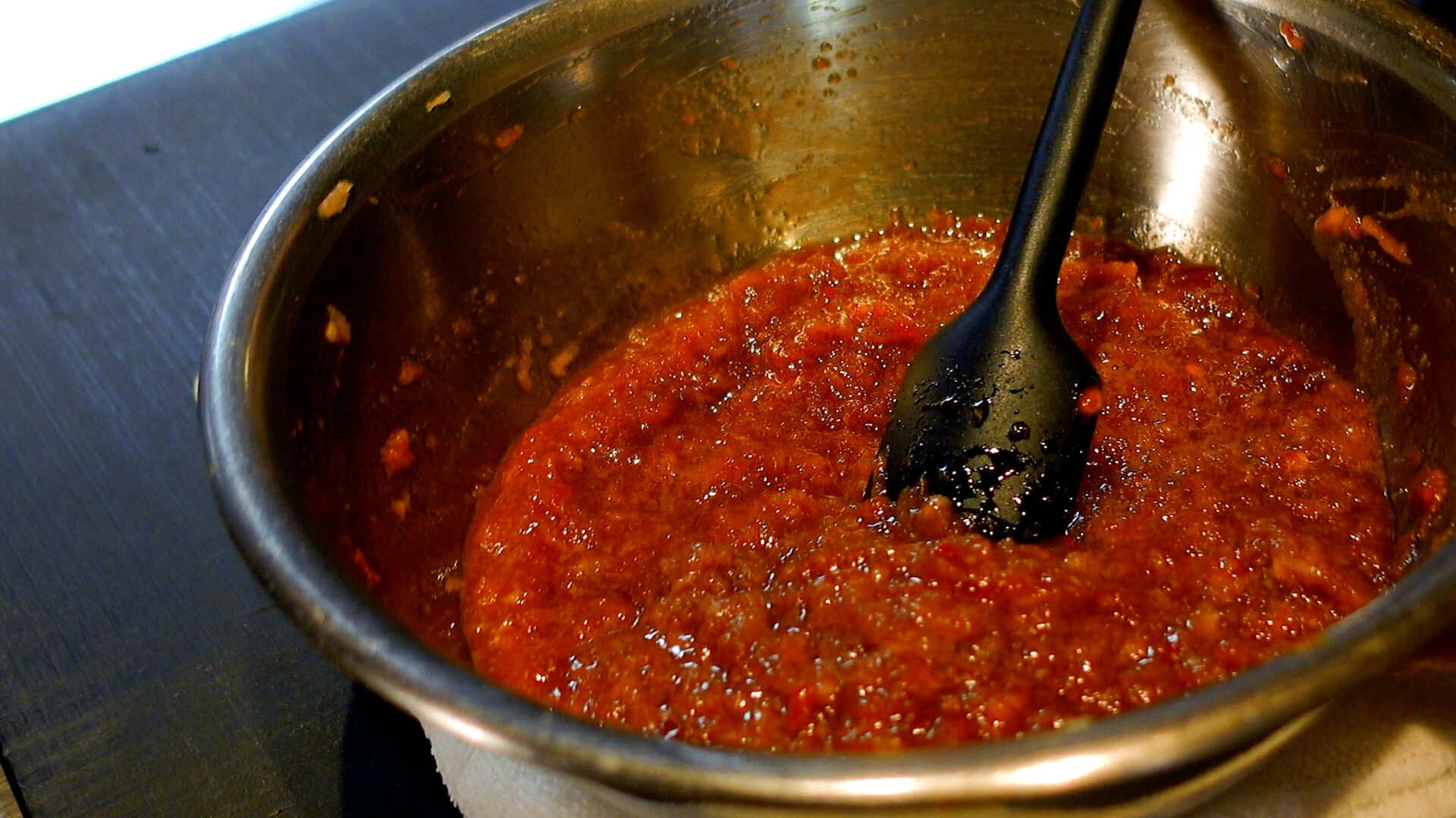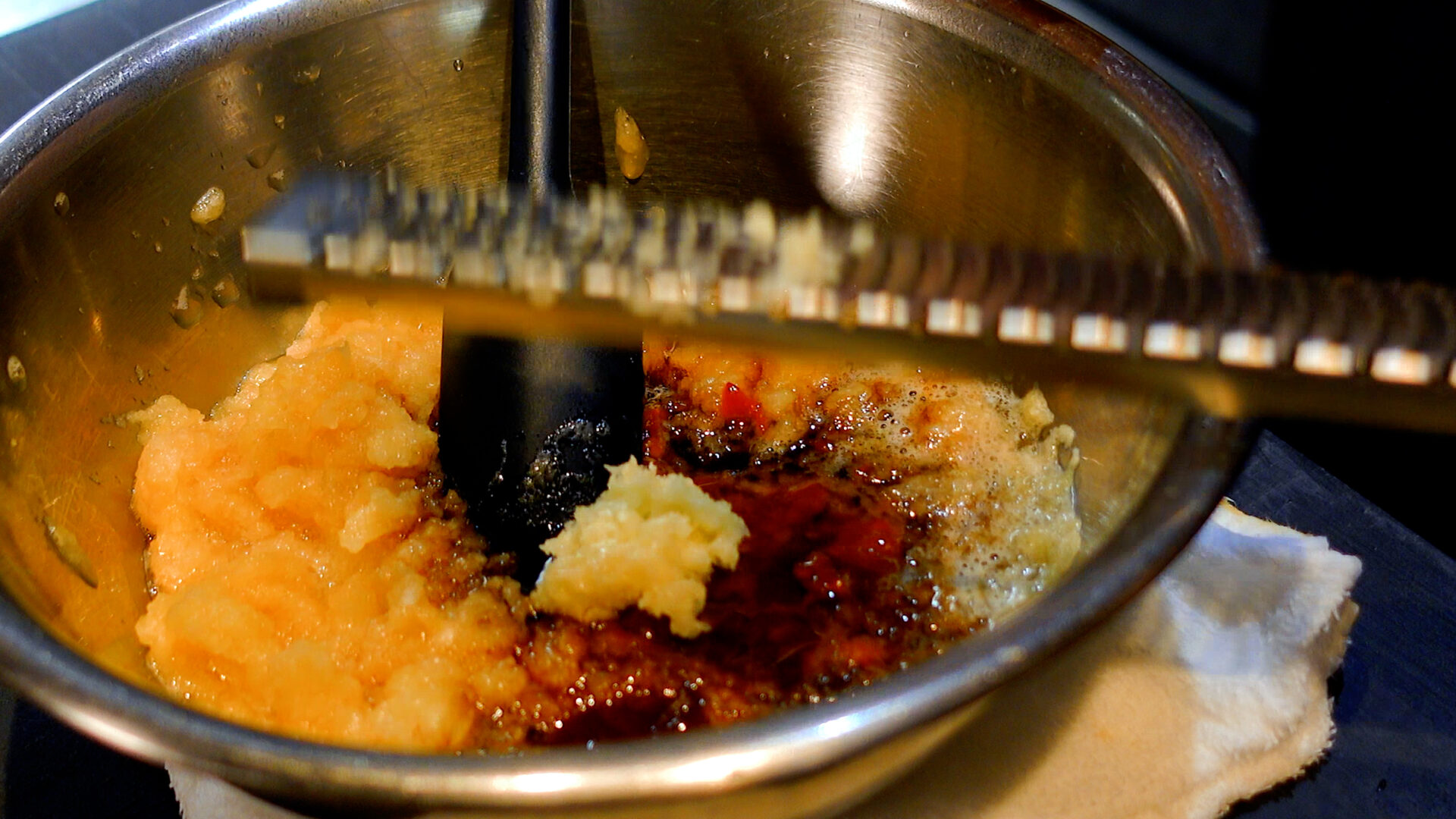 ◆コチュジャン 大さじ2、豆板醤 大さじ1、醤油 大さじ1、はちみつ 大さじ1/2、おろしにんにく 1片分、おろし生姜 1かけ分、粗熱をとっておいた赤ワインを加え混ぜ合わせる。