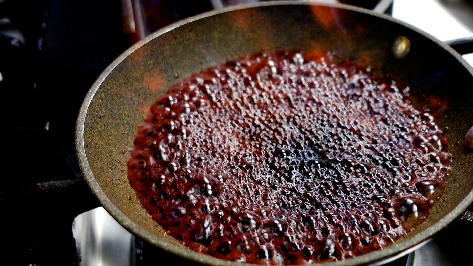フライパンに赤ワインを入れ中火にかける。アルコールを飛ばし煮詰め、粗熱をとる。