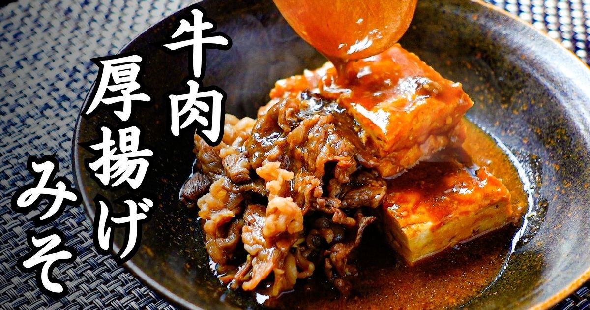 ほっこり温まる肉厚揚げみそ仕立て! 牛肉のうま味と厚揚げのコクにみそをプラスして作る、食べごたえのある一品。牛肉を先に炒めてうま味を引き出し、みそとテンメンジャンをベースにしたつゆを加え、より深い味わいに。白ご飯がすすむこと間違いなし!丼ぶりにしても、お弁当のおかずにしても◎寒い日にぴったりのコク旨おかずです!