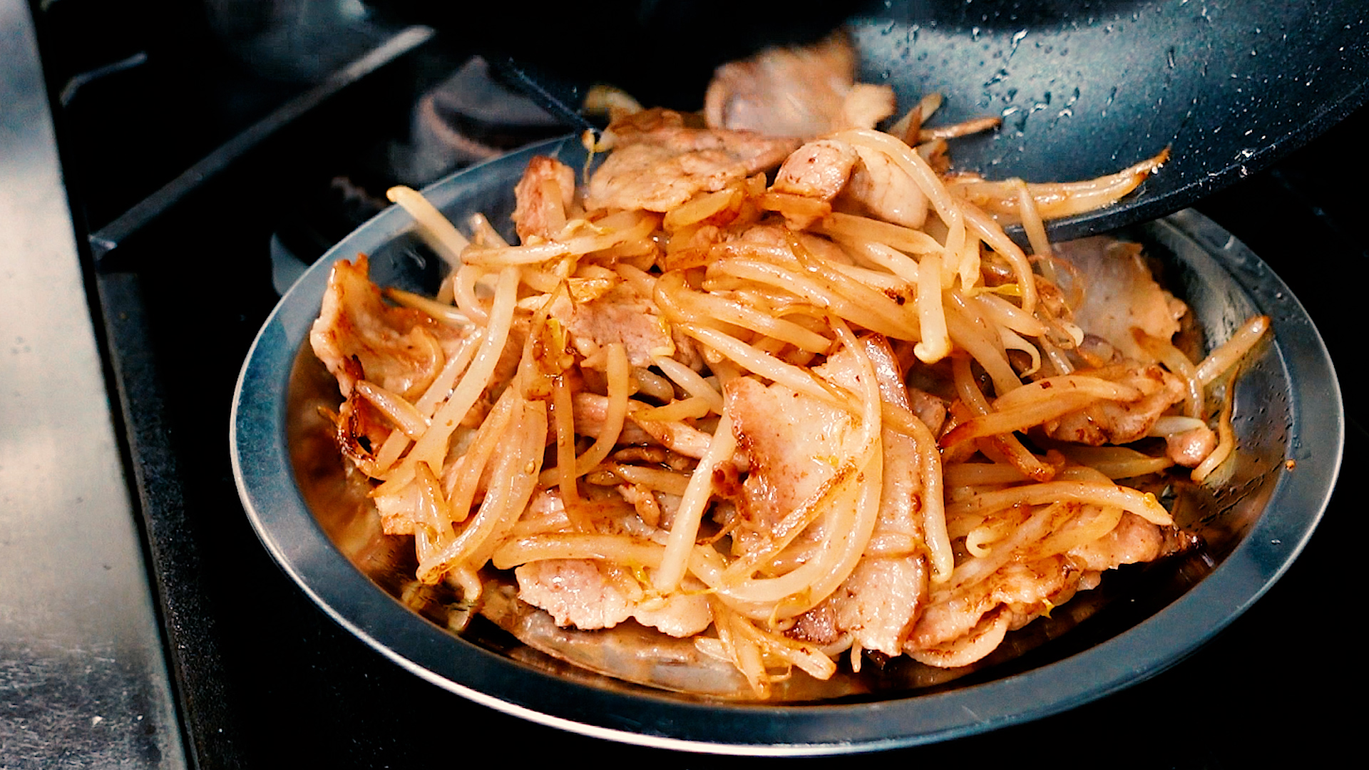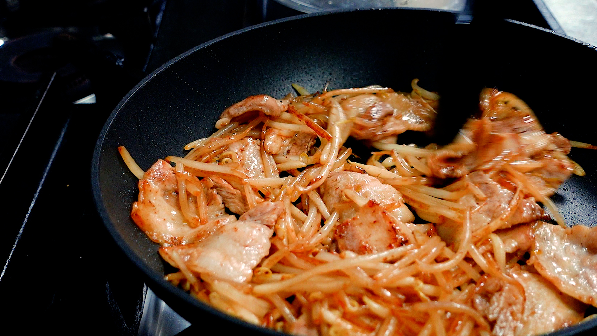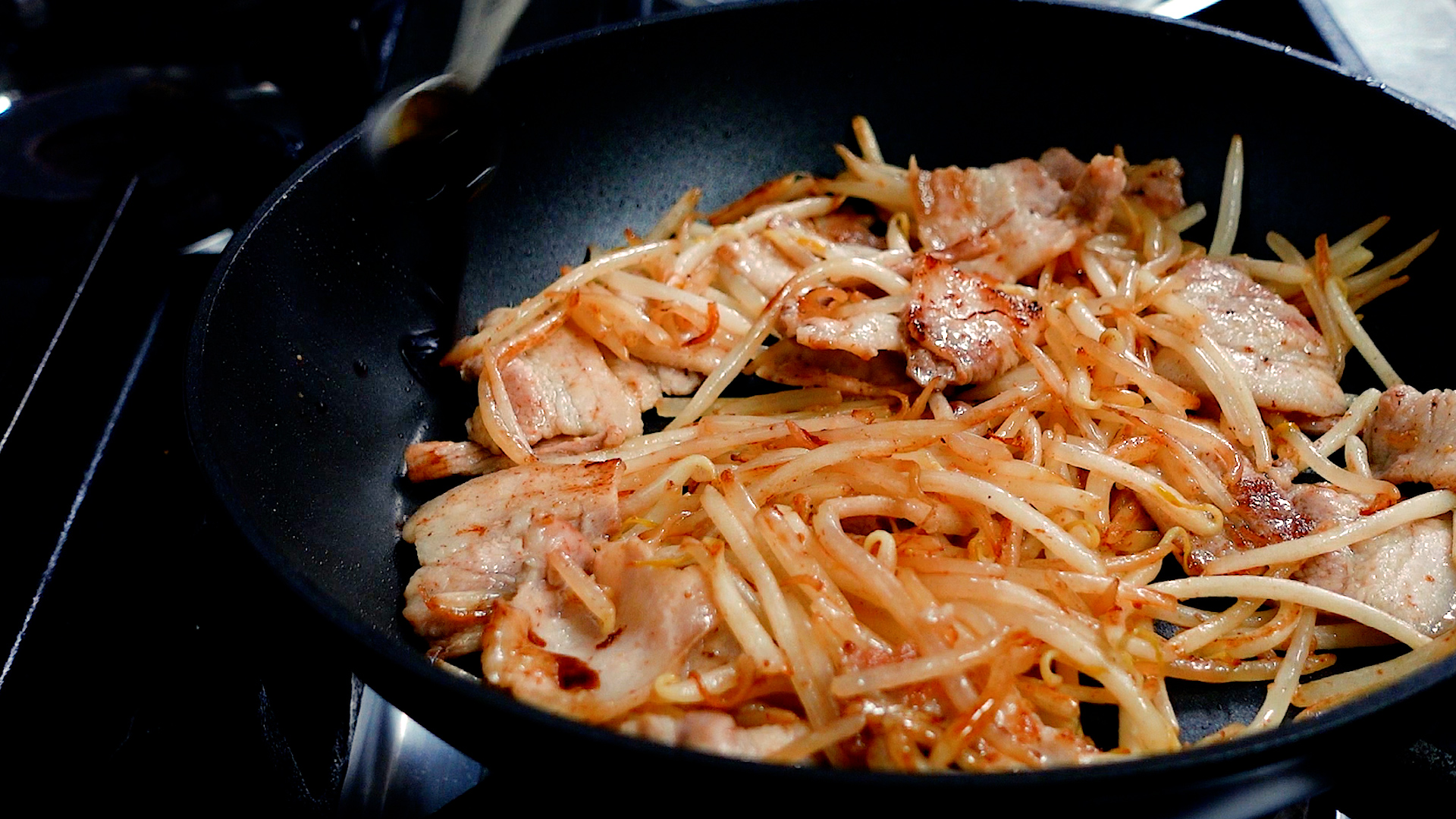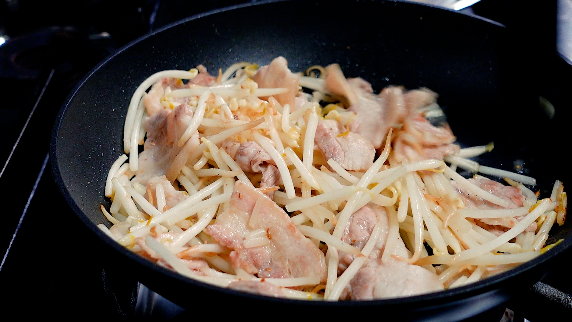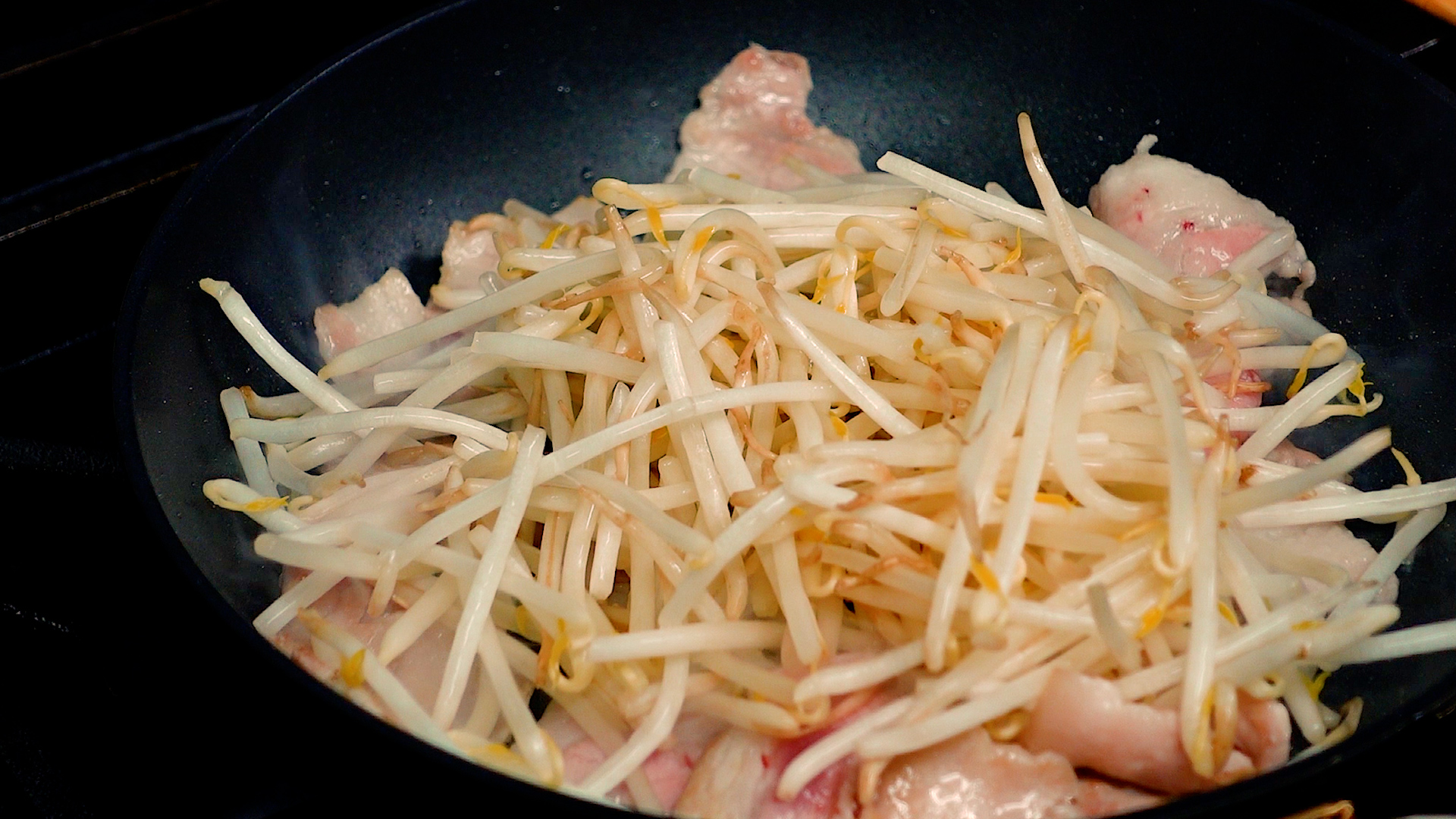 💡豚肉をいったん取り出し、もやしを炒めしんなりしたら豚肉を戻し入れてもOK。こうすると豚肉が柔らかく仕上がります。